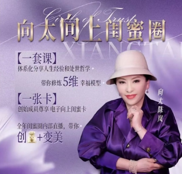 近日,向太陈岚开卖自己的知识付费课程《向太向上闺蜜圈》,售价为599元,券后价为399元。