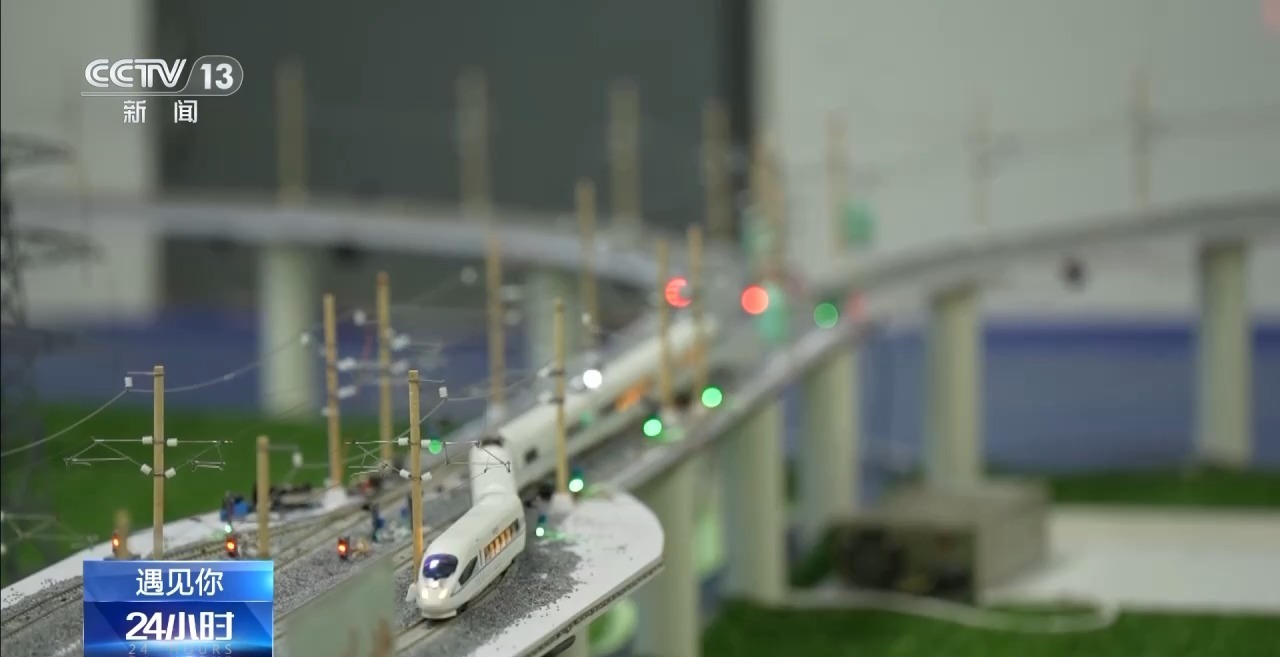 模型按照真实高铁的原理供电,运行过程中,占位区段、信号机与联锁系统协同配合,保障列车之间互不冲突。最高每秒1.5米的速度,按比例换算可以达到真实高铁的时速。集中调度系统能统一管理信号机、道岔和进路,宛如一个缩小版的调度中心。