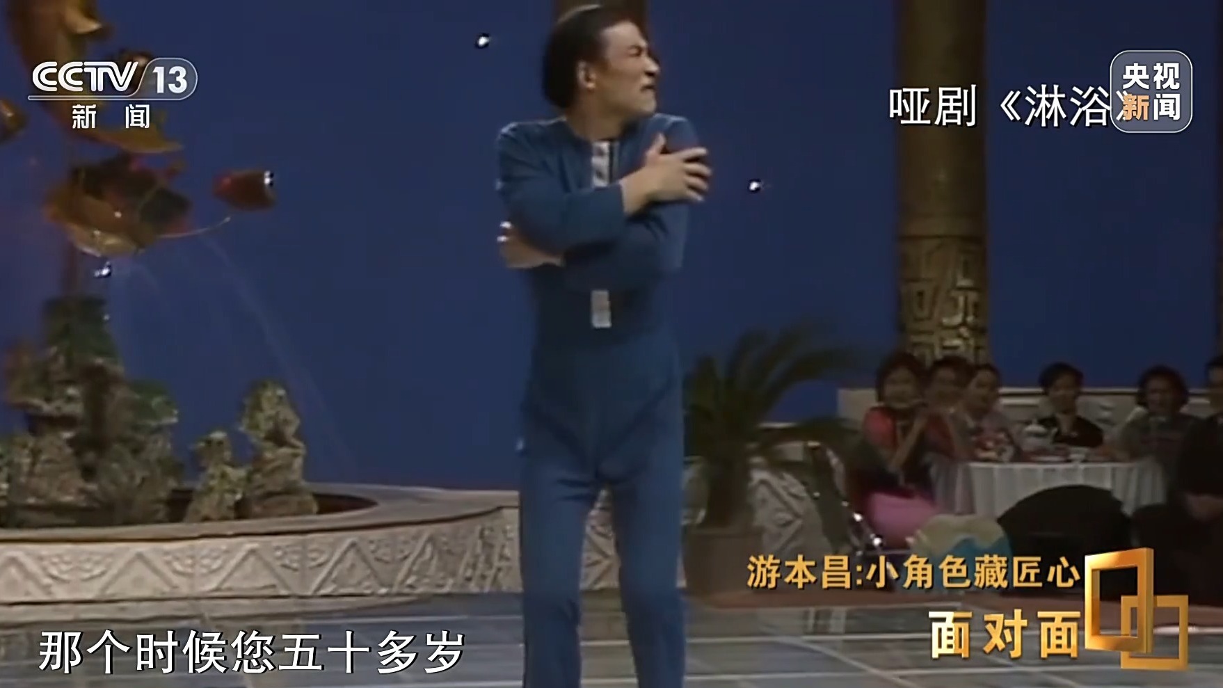 1984年的除夕夜,游本昌带着他的哑剧《淋浴》登上了中央电视台春节联欢晚会的舞台。