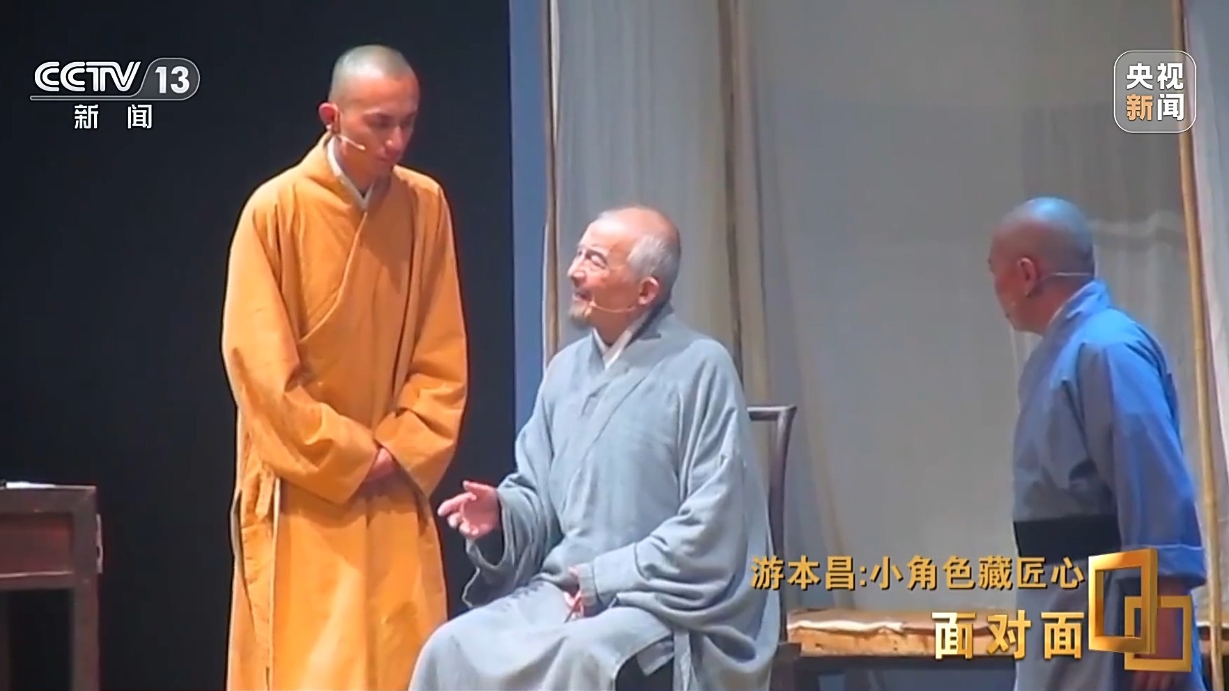 国家一级演员 游本昌:这个形式是我最喜欢的,而且我觉得我能表达,因为我心中的东西是很充实的,这表达出来是很自然、舒服的,我觉得这个就是内心世界的展示。而且它不光是远距离,近距离近到你光看我的眼睛,就能感觉到瞳孔里是什么。