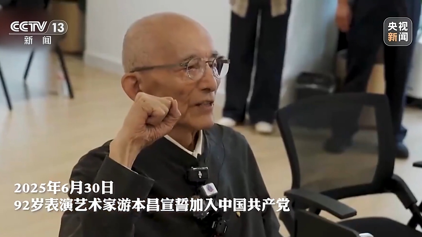 一年前,游本昌递交了21页的入当申请书。如今,佩戴在他胸前的党员徽章,映射了他一生对信仰的坚守,尽管暮年已至,信念的力量却不因年龄而衰竭。