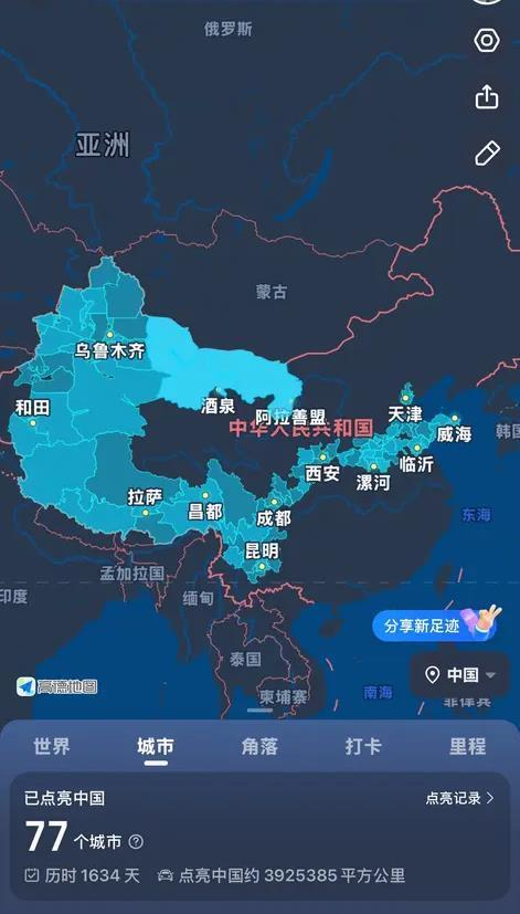 已骑行省份和城市(受访者供图)