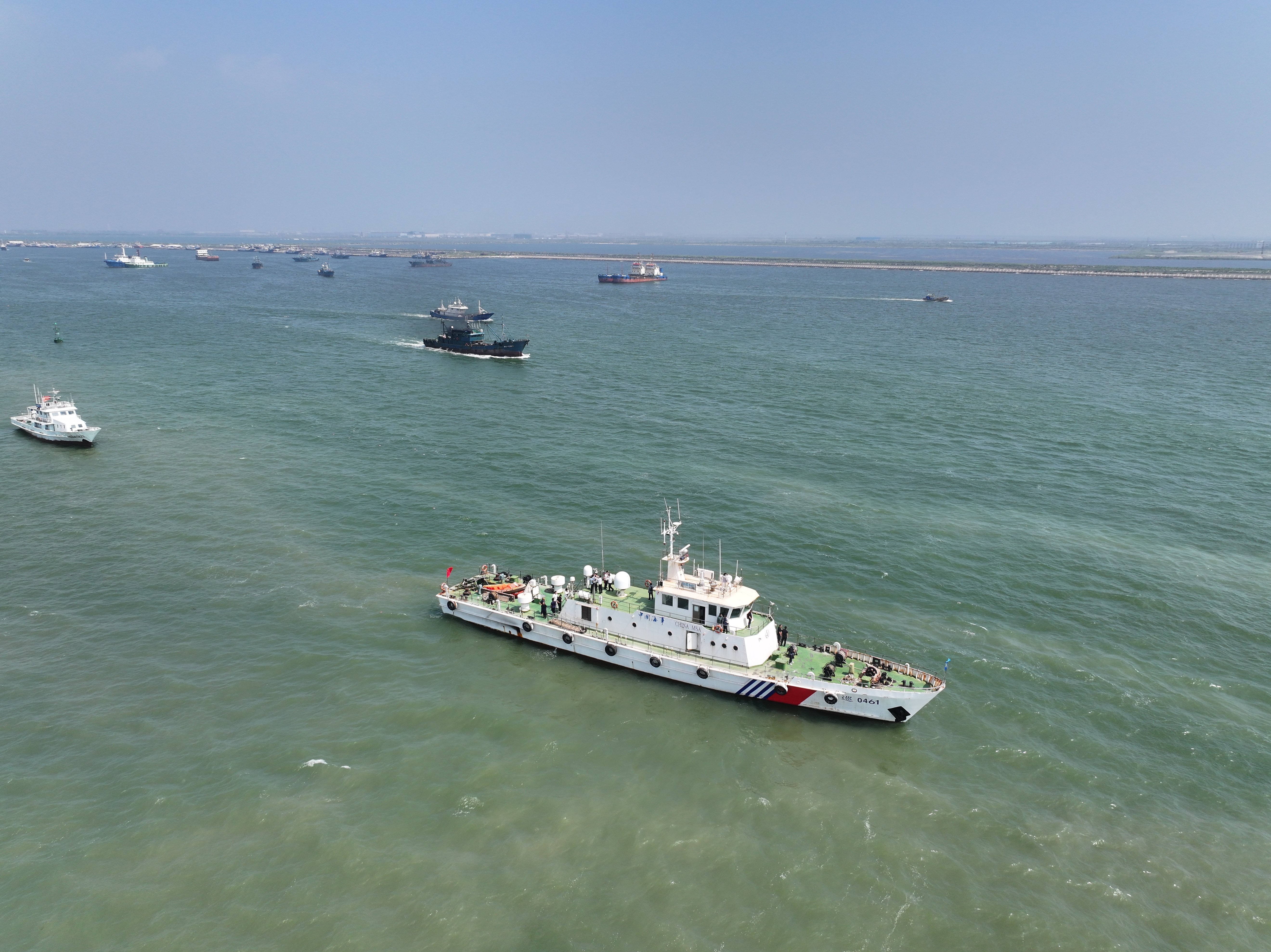据了解,9月1日12时起,我国北纬35°以北海域伏季休渔结束,相关地区渔船竞相出海作业。山东、天津、辽宁、河北四地海事、渔业部门部署海巡、渔政等执法船艇104艘、航空器43架、执法人员700余名,对通航密集区、事故多发区等重点复杂水域实施海上联合巡航执法、交管中心(VTS)专台专人盯防、临时交通管制、专业救助力量应急驻守等风险防控措施。