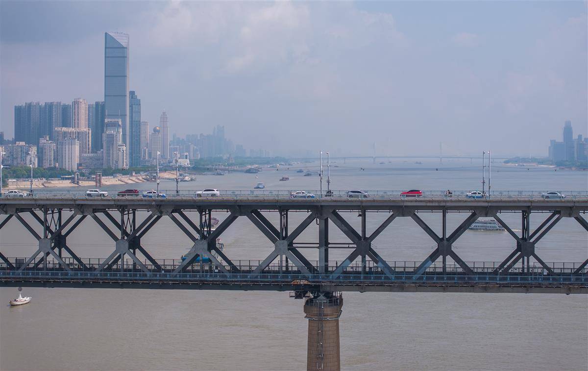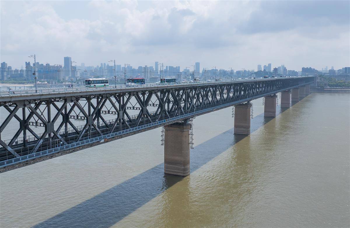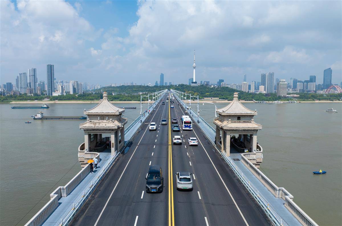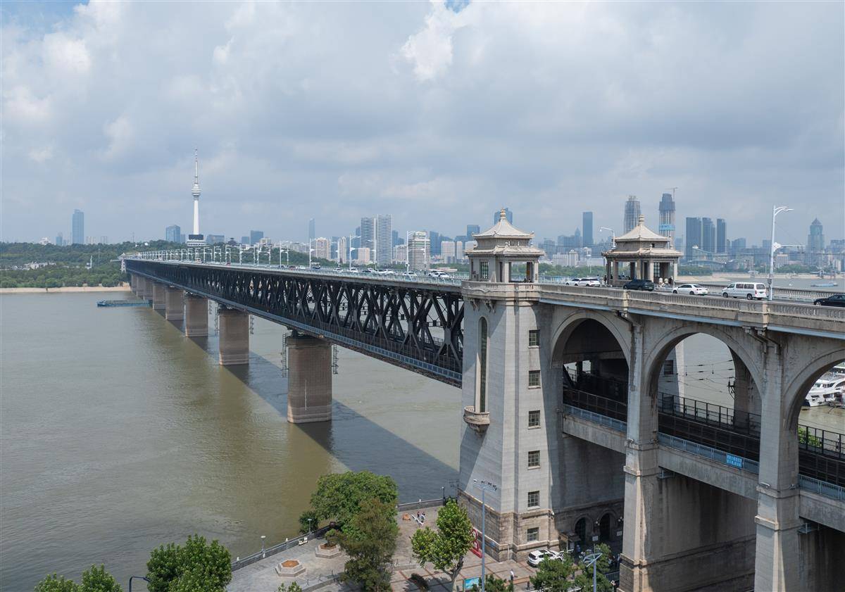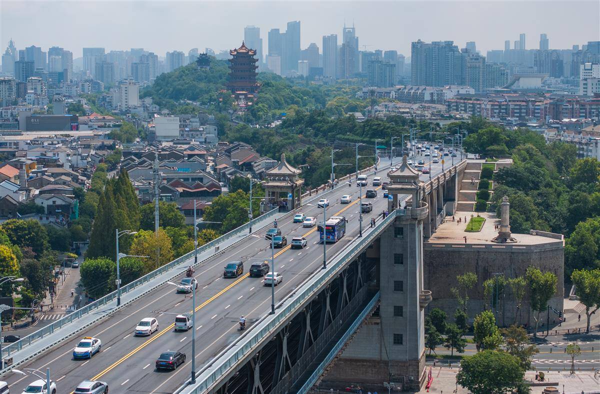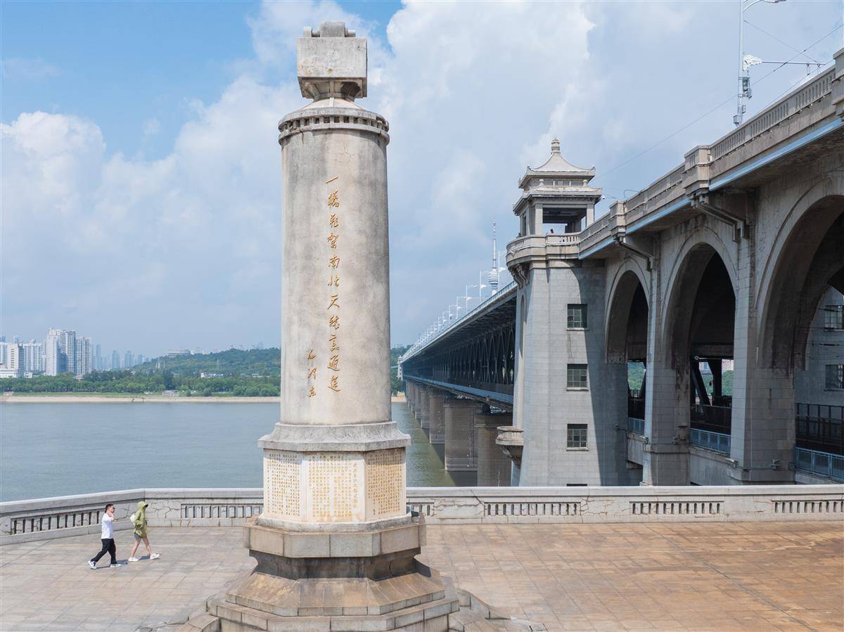 9月1日,武汉长江大桥桥面上车水马龙,游客在桥头堡游玩、拍照打卡。70年前的今天,武汉长江大桥开工,中国现代化桥梁建设从此起步。如今,武汉已有13座长江大桥,湖北同时在建8座。全球40多个国家和地区,都能看到“中国桥”的身影。(湖北日报全媒记者 柯皓 摄)