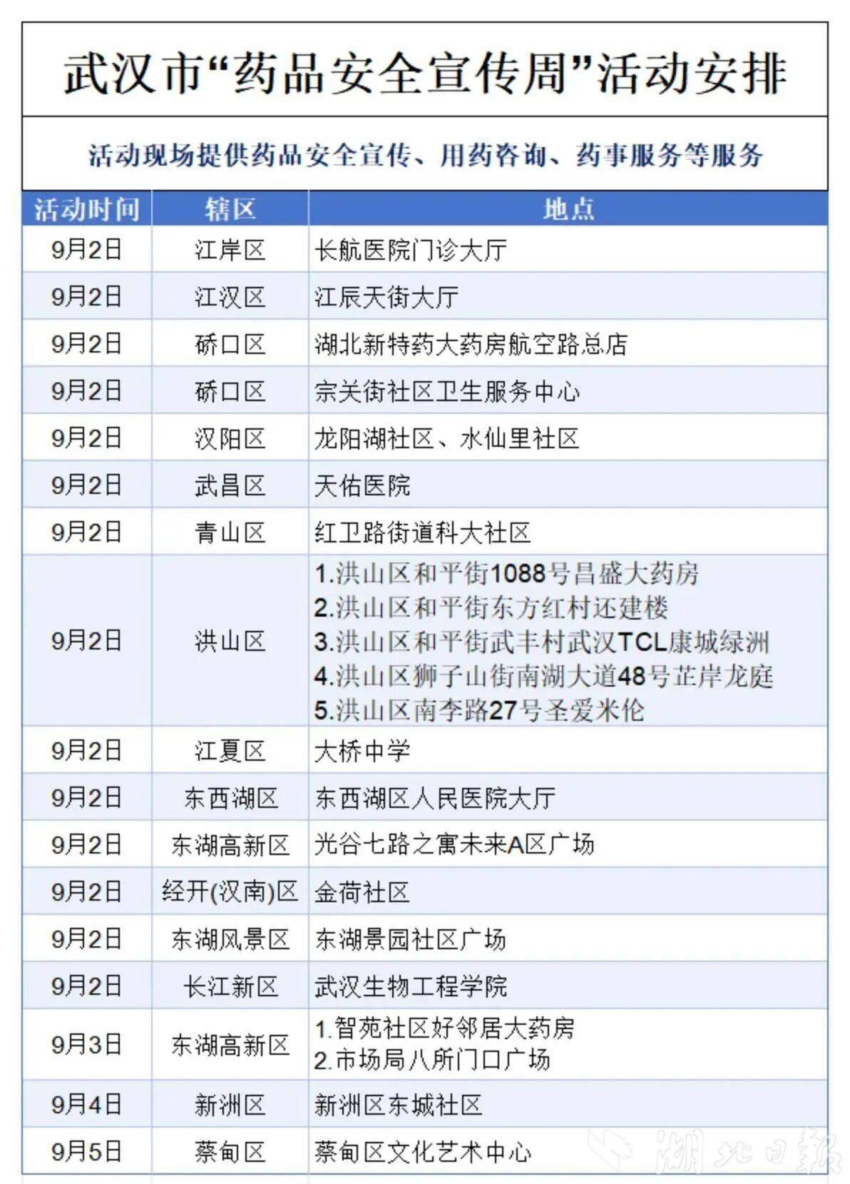 湖北日报讯(记者杨文漪、通讯员郭辉)9月1日,2025年武汉市“药品安全宣传周”活动正式启动。9月1日至7日是“全国药品安全宣传周”,本次活动以“药品安全 监管为民”为主题,将在宣传周期间通过多种形式普及药品安全知识,增强市民自我保护能力。