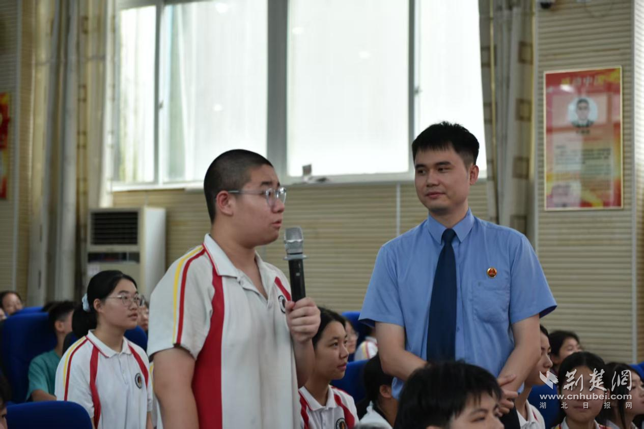 同时,白彩还与同学们许下“三个约定”:做拒绝欺凌的正义“小卫士”,主动抵制校园暴力、孤立排挤等行为,守护同学间的真挚情谊;做安全上网的文明“小使者”,远离网络谣言、不良信息,规范网络言行,守住网络法治底线;做严于律己的守法“小榜样”,将校规校纪内化于心、外化于行,让守法成为青春最鲜明的底色。这份“约法三章”,既是对青少年的殷切期望,也为黄陂区青少年普法工作指明了实践方向。