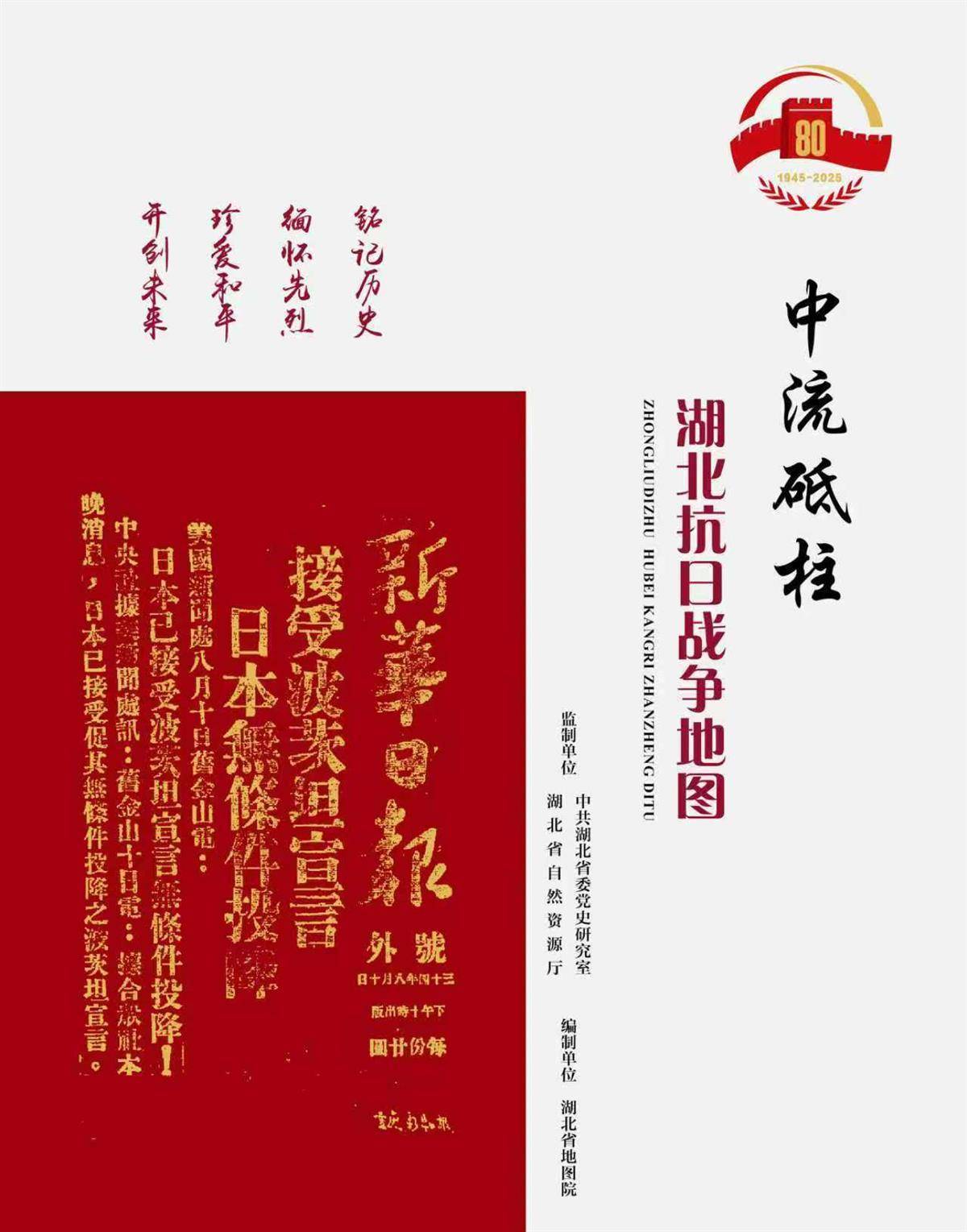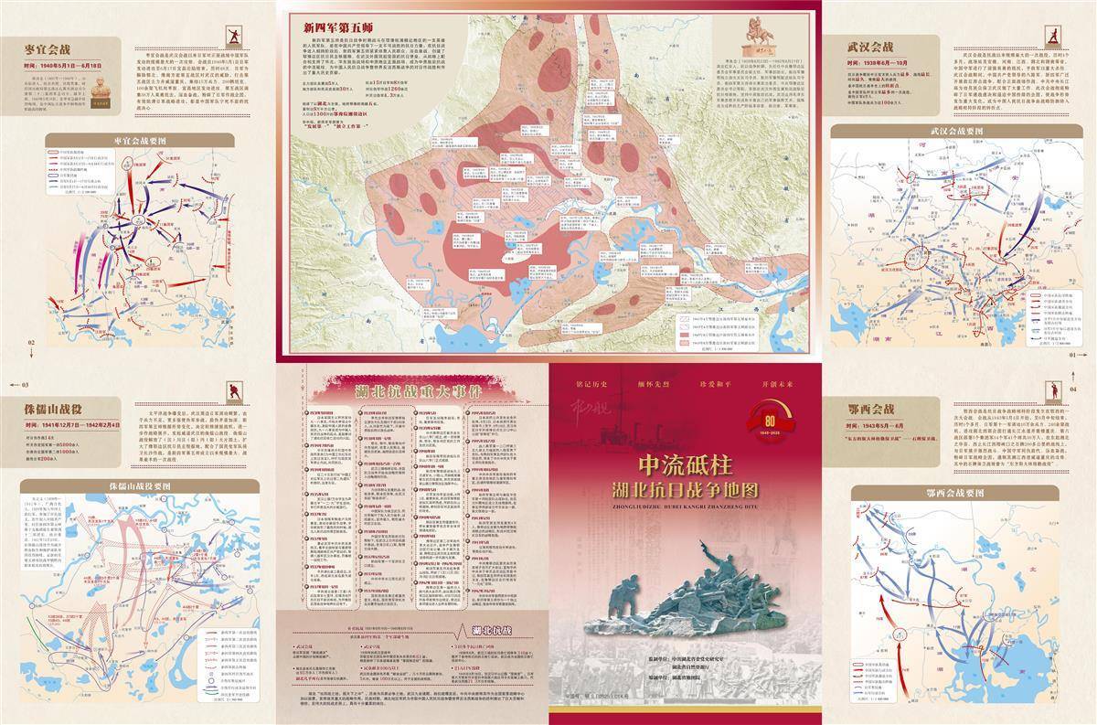 近日,中共湖北省委党史研究室和省自然资源厅联合监制,省地图院编制的《中流砥柱——湖北抗日战争地图》正式与读者见面。该地图正面为湖北抗战大事记,并用地图的形式表现了在湖北发生的武汉会战、枣宜会战、侏儒山战役、鄂西会战等重大战役,在地图上追忆了由中国共产党领导的新四军第五师在湖北的抗战足迹。地图反面为在湖北省地图上标注了国家级抗战纪念设施遗址、国家级和省级重要抗战文物保护单位和湖北籍以及牺牲在湖北的著名抗日英烈。