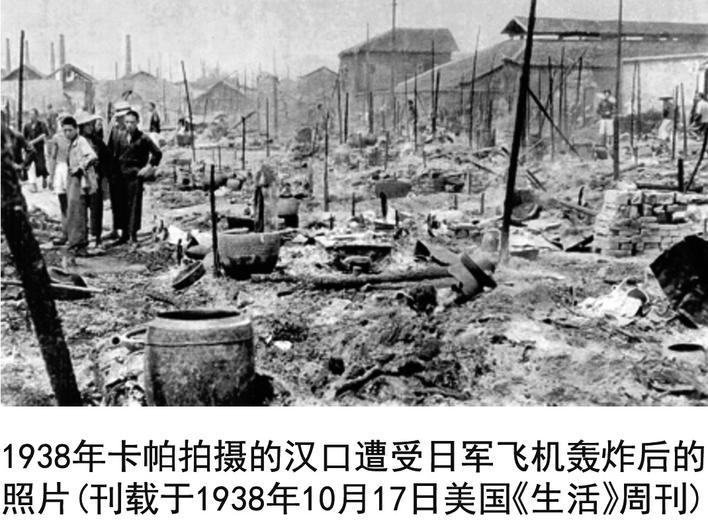罗伯特·卡帕拍摄的汉口遭受日军飞机轰炸后的照片,刊载于1938年10月17日美国《生活》周刊。(资料图片)