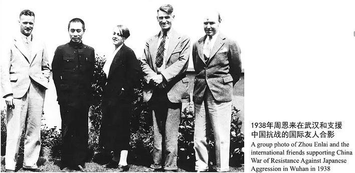 1938年,周恩来在武汉和支援中国抗战的国际友人合影。 (资料图片)