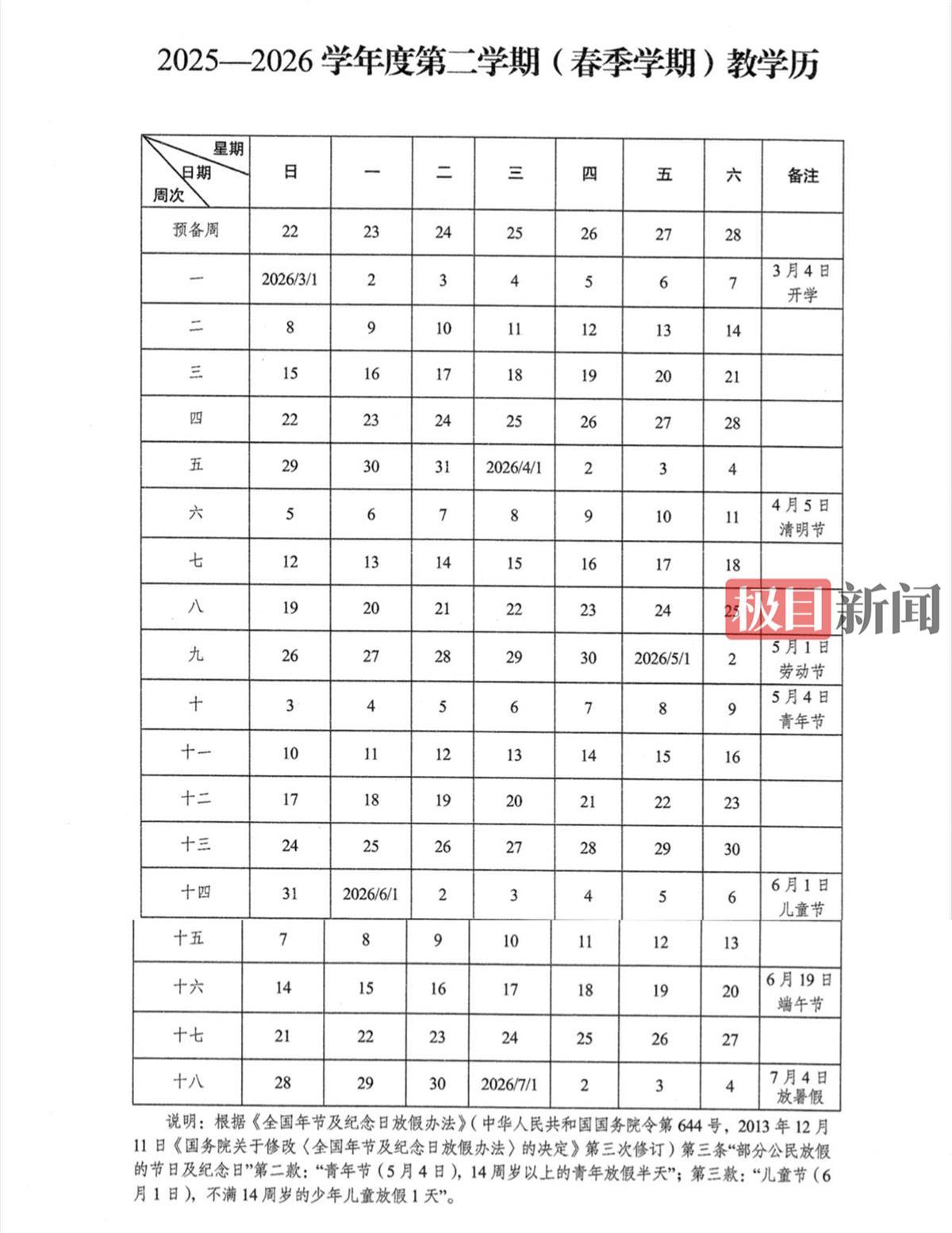 9月1日,武汉市中小学及幼儿园迎来新学期,同时2025-2026学年度两学期校历正式公布。根据安排,义务教育阶段学校、幼儿园将于2026年1月31日放寒假,普通高中于2月7日正式放寒假;春季学期全市中小学校、幼儿园计划于2026年3月4日开学,并将于7月4日开启暑假。