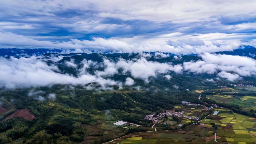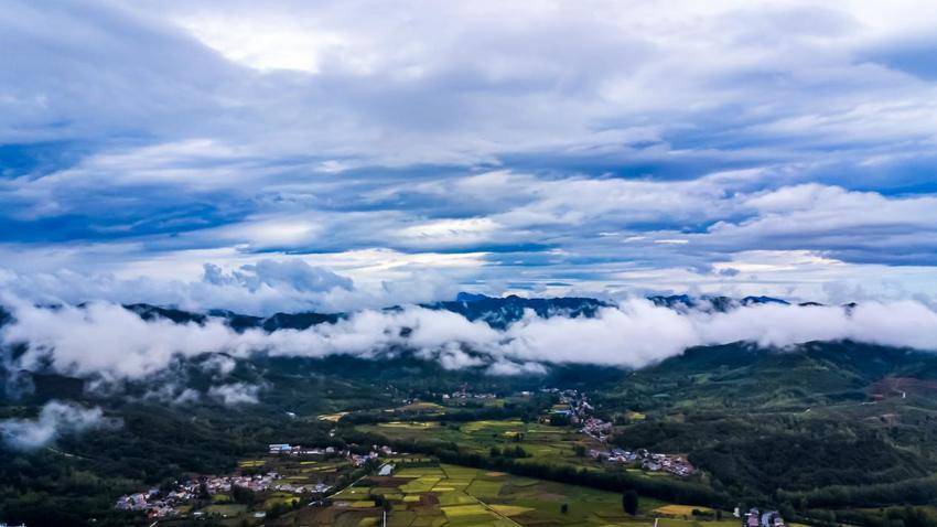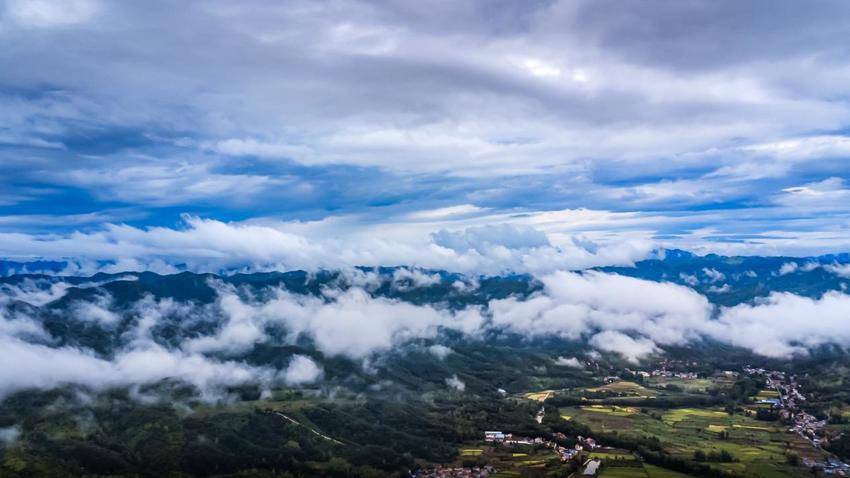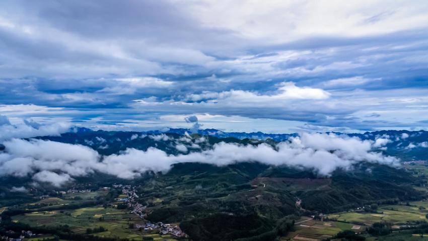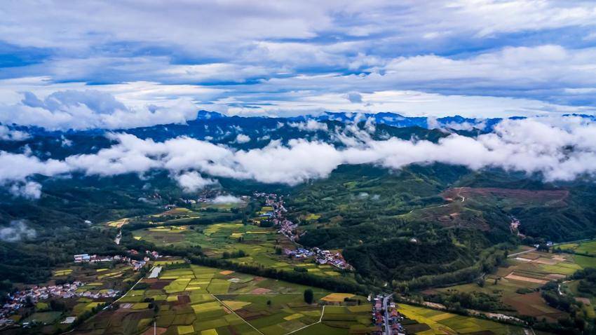 湖北日报客户端讯(通讯员李宗俊、邓倩)近日,南漳县九集镇龙门社区上空云雾缭绕,村庄、河流、山峦、稻田等时而被飘过的云雾笼罩,时而露出苍翠静谧的“身姿”,若隐若现,宛如仙境,为这片宁静的土地增添了几分神秘与诗意。