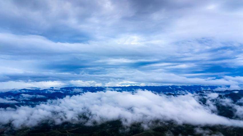 白雾在茫茫群山中聚散开合,时而如棉絮,时而像薄纱,时停时动,来去无形,缥缈无影。