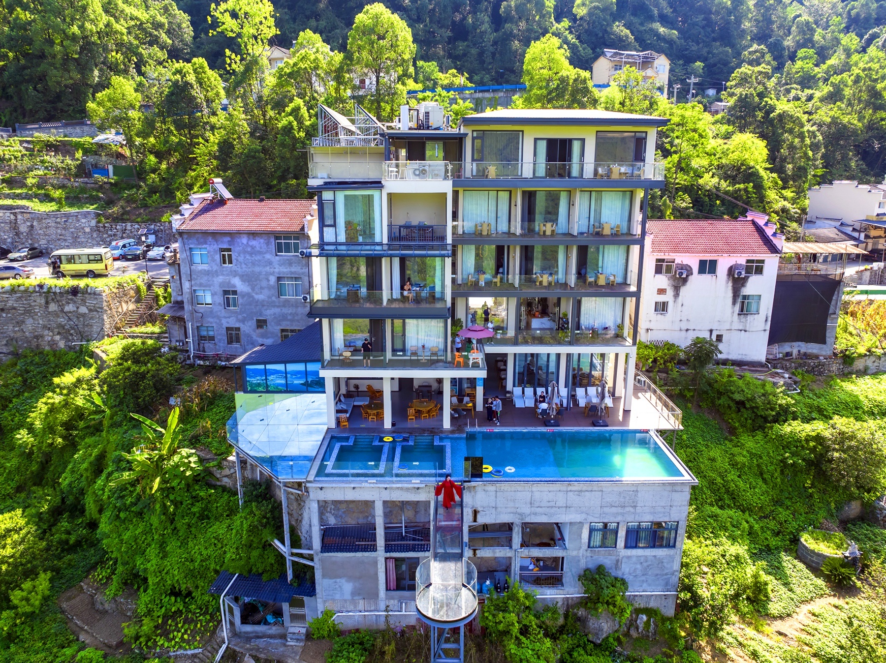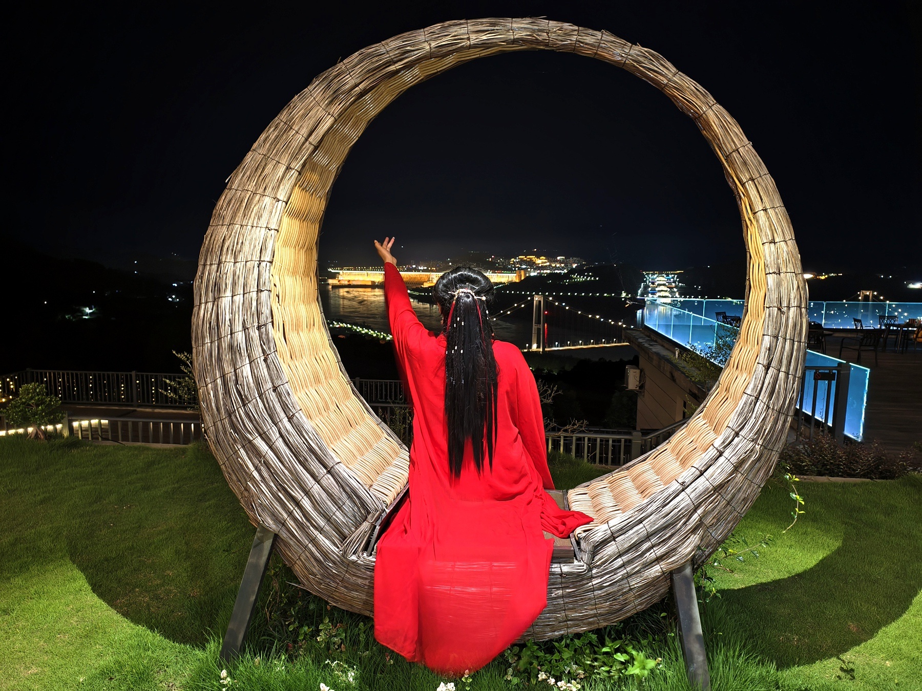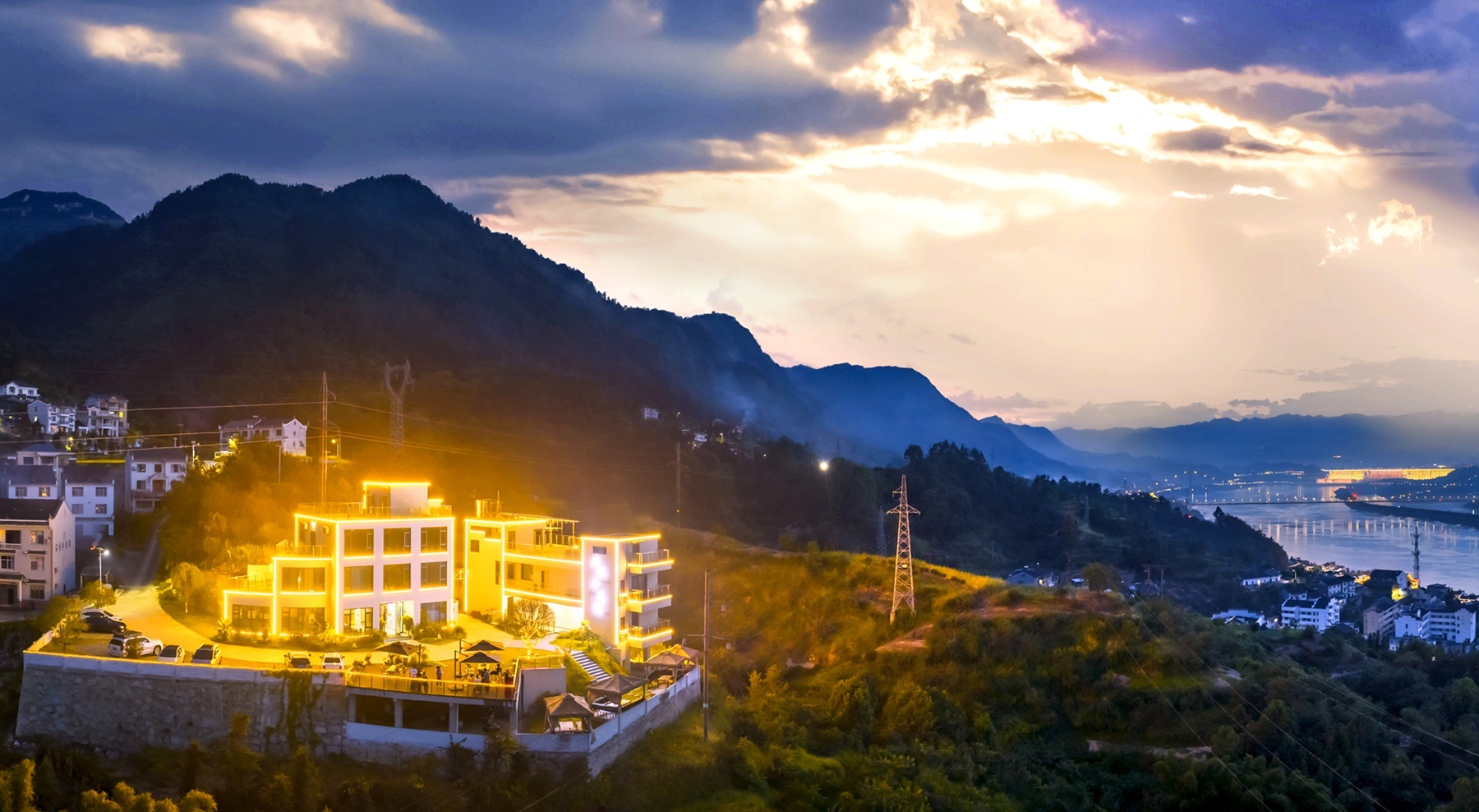清晨的阳光穿透薄雾,洒在西陵峡江面,波光粼粼的水面倒映着三峡大坝的雄姿。在三斗坪镇“半坡雅望”民宿的露台茶吧,望晓蓉望着远处的五级船闸,指尖划过温热的茶杯——这位54岁的返乡人,用8年时间、1400多万元在半山腰筑起的“峡江家”,如今成了游客打卡长江美景的“观景台”。“躺在床上看大坝晨雾,夜里在星空房‘摘星’,这是独属于峡江的浪漫。”她的语气里满是欣慰。