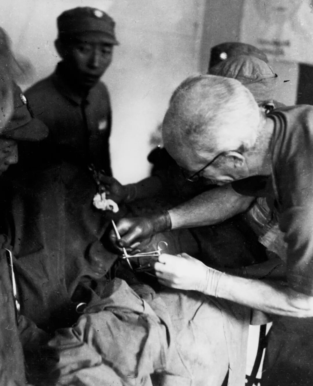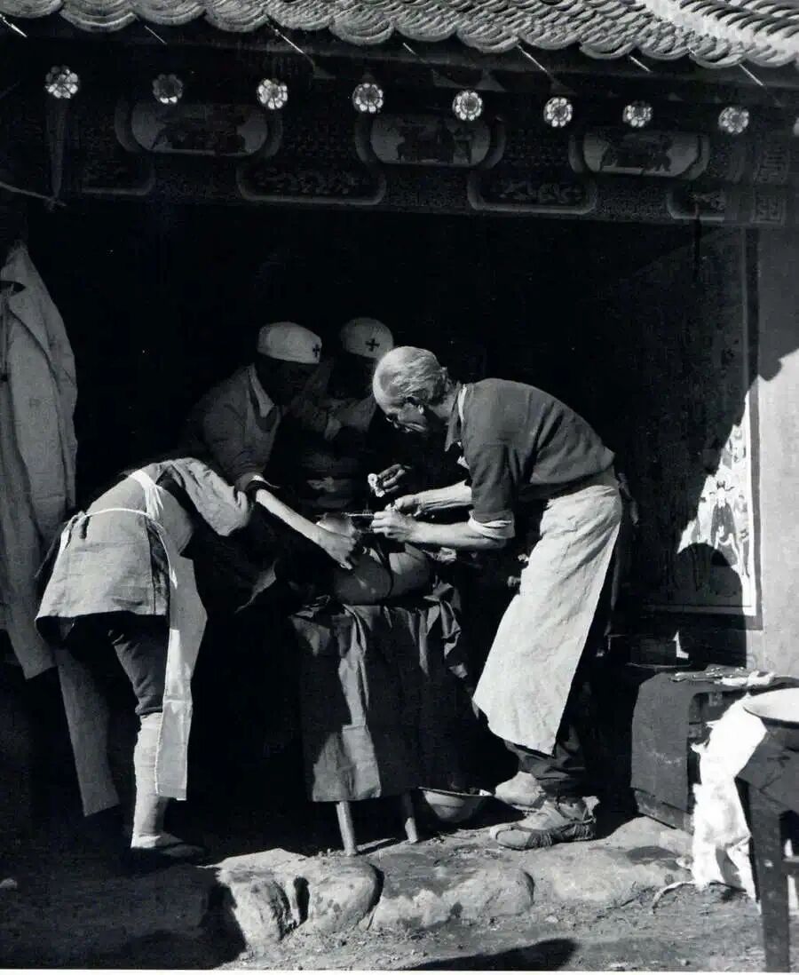白求恩带领医生做示范手术。北京白求恩基金会供图