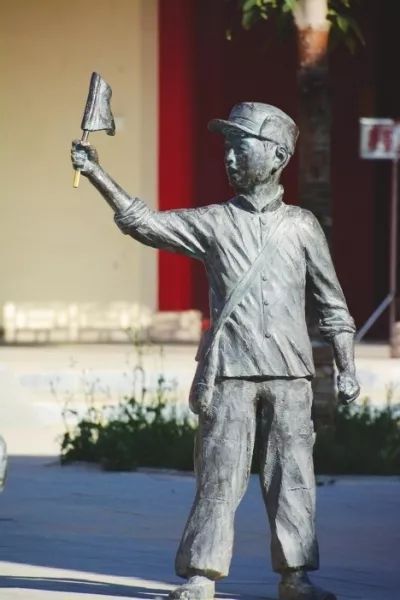 甘肃静宁界石铺,以余新元为原型的“红军娃”雕塑。