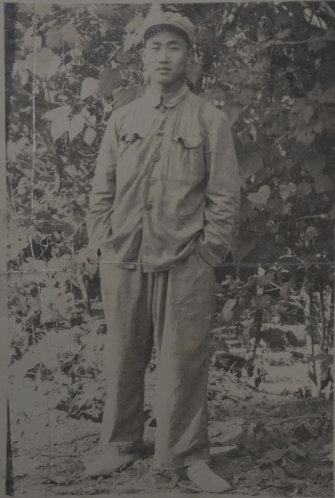 他身着八路军军装