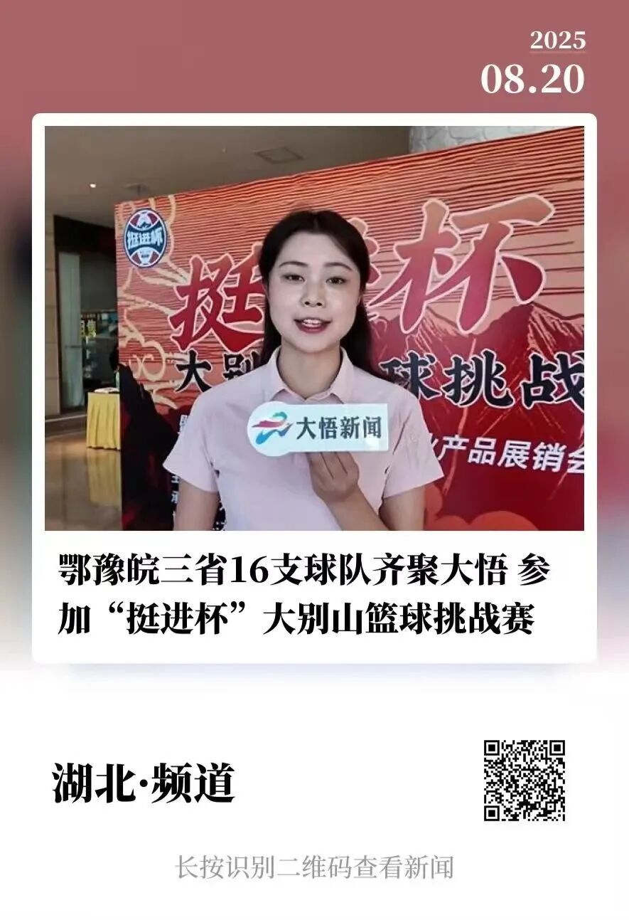 8月20日,新华社客户端播出《鄂豫皖三省16支球队齐聚大悟 参加“挺进杯”大别山篮球挑战赛》。