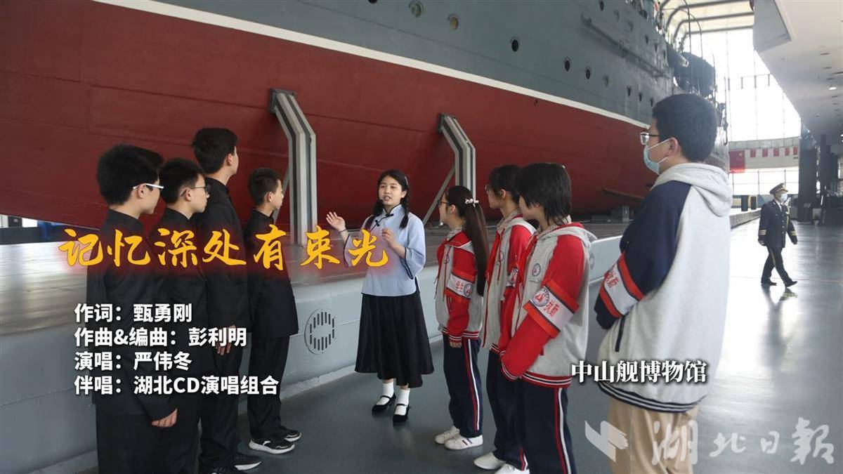歌曲MV中,则以中山舰、中山公园受降堂等多处抗战遗址、博物馆、纪念馆等为背景,配以中学生参观遗址、聆听抗战老兵讲述抗战故事等画面,在深情的歌声中,让观众深深共鸣。
