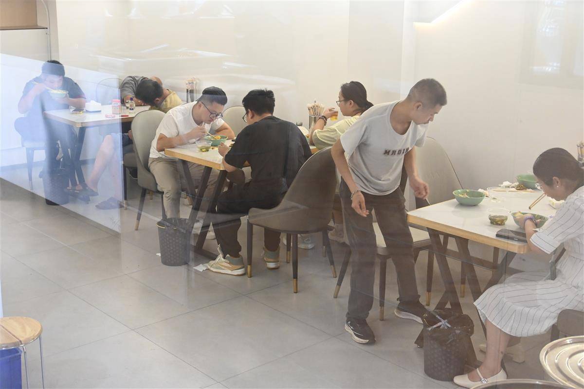 一个半小时里,卞英超已送了几趟盒饭,进店的顾客也超过了80人。除了的哥的姐,保安、环卫工人、外卖员和附近的居民也来了不少,有人行色匆匆,也有人安静地刷手机休息。