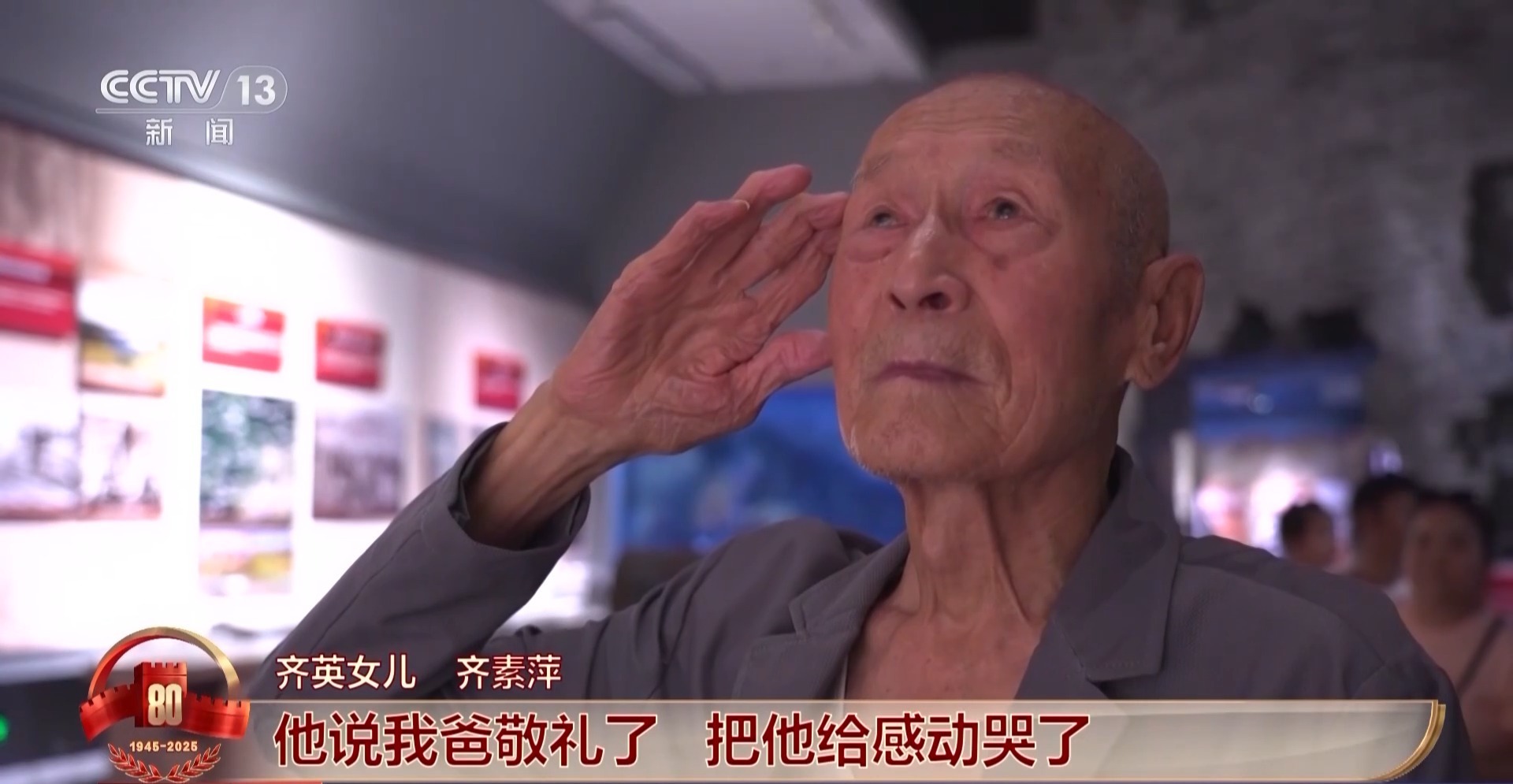 齐英女儿 齐素萍:参观百团大战纪念馆的时候,走到聂荣臻聂帅的照片那里,那个讲解员哭了。他说,我爸敬礼了,把他给感动哭了。