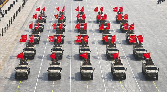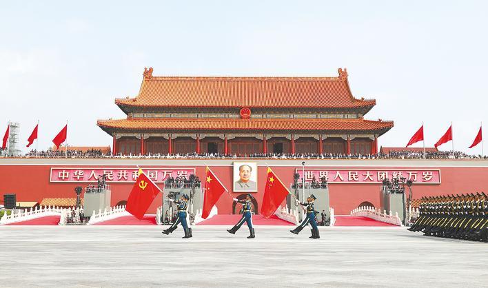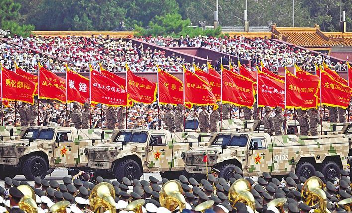 9月3日,承载历史荣光的战旗方队接受祖国和人民检阅。