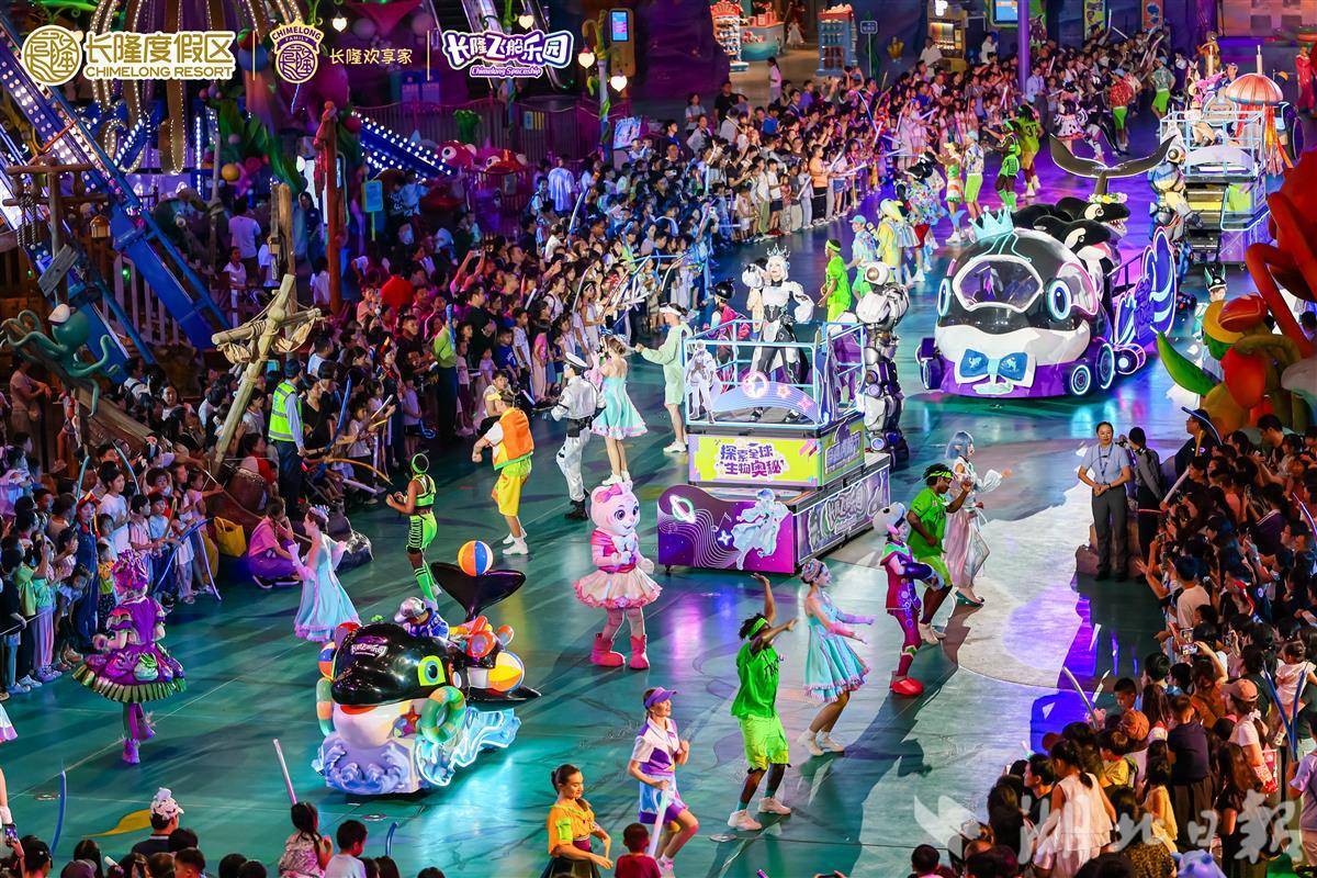 另一边,广东长隆集团派出高人气吉祥物组合——“欢乐大使”卡卡、琦琦和粉小琦一同登场。卡卡是一只白虎,琦琦是活泼的金虎,粉小琦则来自梦幻的粉色奇幻岛。它们将与长隆大马戏的小丑演员一起,加入文旅IP花车巡演阵容。此外,还有来自俄罗斯等国的专业舞者,每天定时进行歌舞表演、现场互动,为观众带来充满活力的欢乐体验。