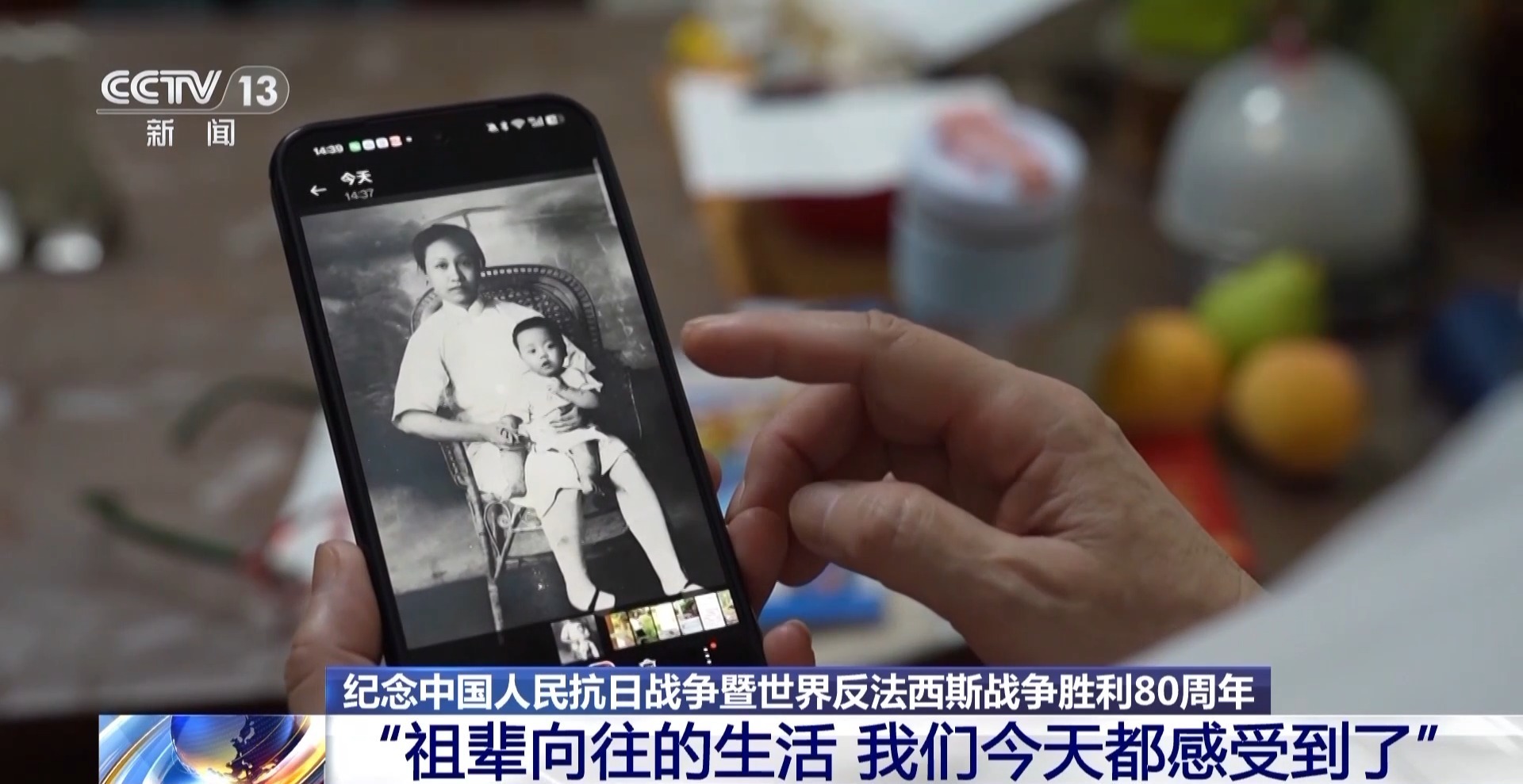 左权烈士的外孙沙峰,特意将姥姥、姥爷与母亲生前唯一的一张合影存放在手机里,带到了天安门广场,以一种特别的方式来“共同见证”这一庄严而光荣的时刻。