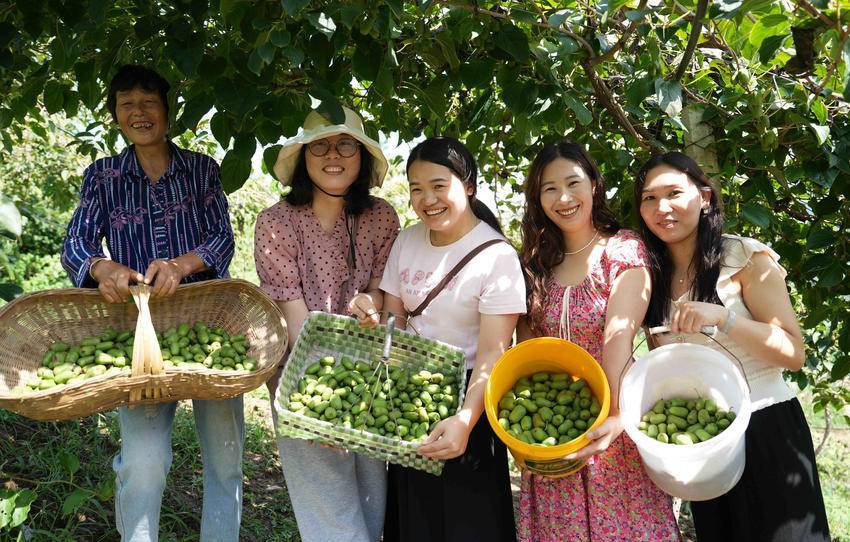 走进保康县寺坪御农香家庭农场,一串串如翡翠般的软枣猕猴桃挂满枝头,清甜香气扑面而来。游客们手提果篮,穿梭林中,尽情享受采摘的乐趣。