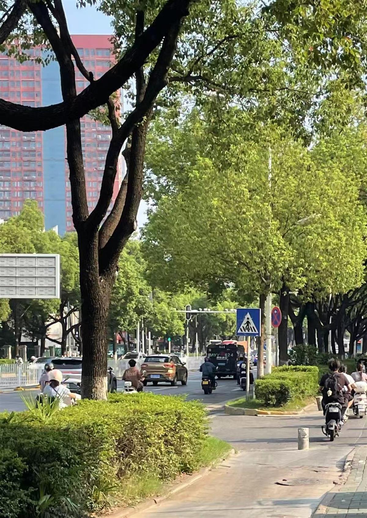 气象数据印证了你们的感受:今日(4日)17时50分,气温34.4℃,相对湿度59%,体感温度39.7℃。