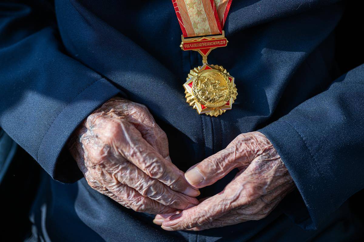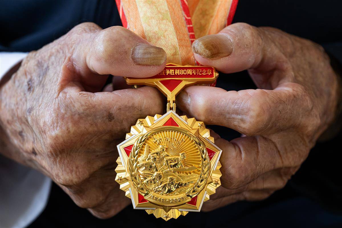 抗战老兵刘吉祥佩戴的抗战胜利80周年纪念章。(湖北日报全媒记者 任勇 摄)