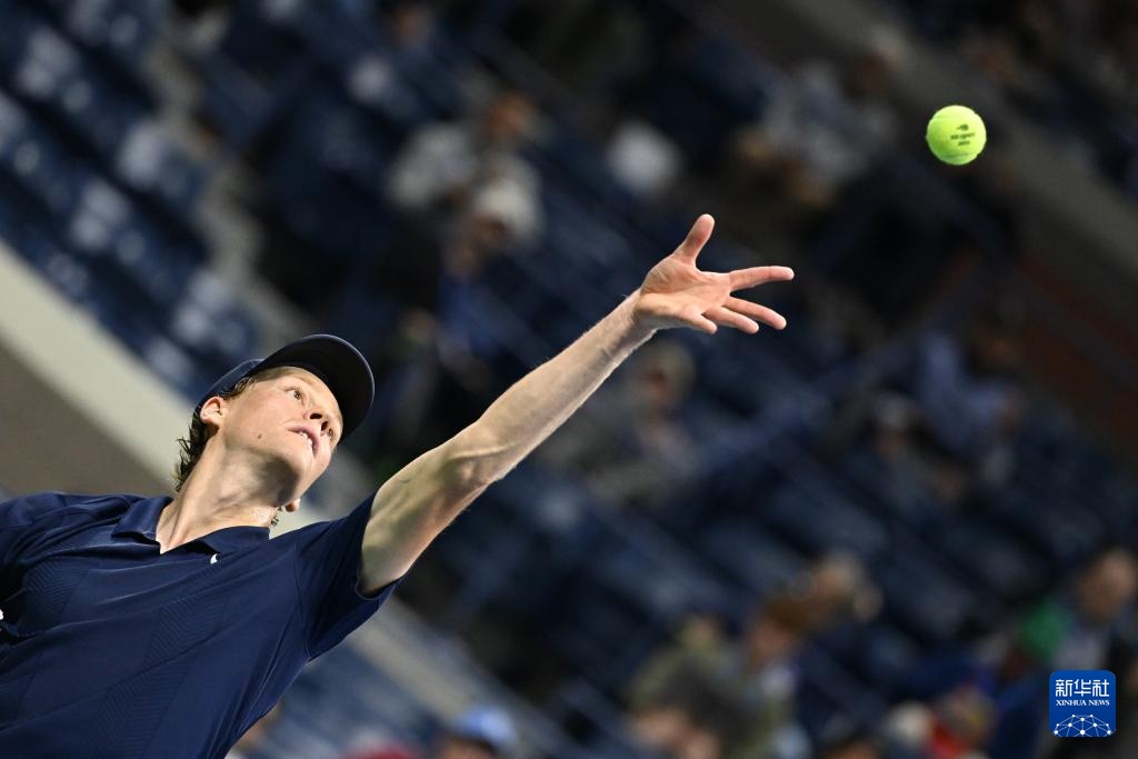 9月3日,辛纳在比赛中发球。