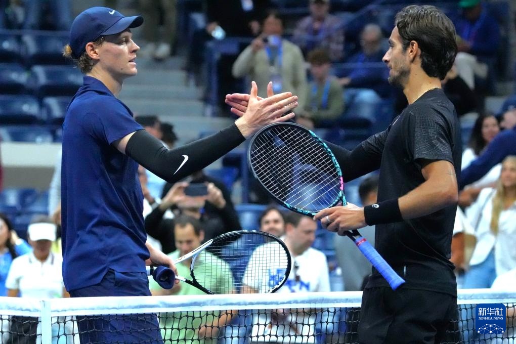 当日,在2025美国网球公开赛男子单打四分之一决赛中,意大利选手辛纳3比0战胜另一位意大利选手穆塞蒂,晋级四强。