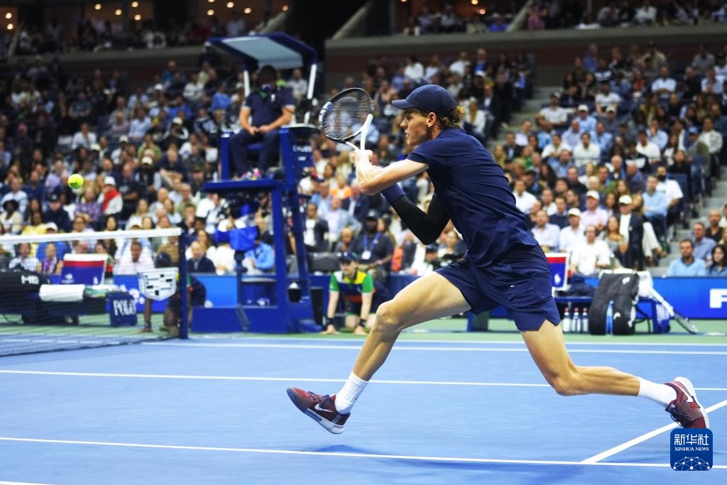 9月3日,辛纳在比赛中回球。