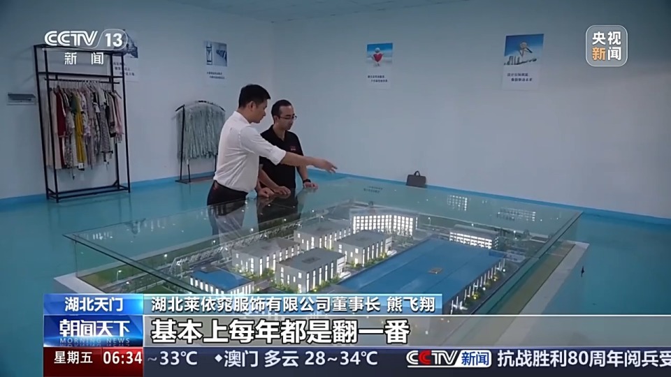 湖北莱依窕服饰有限公司董事长 熊飞翔:现在服装电商发展太快了,尤其是天门,基本上每年都是翻一番。我们也想尽快跟上步伐,把上下游生产资源全部集中在一起。