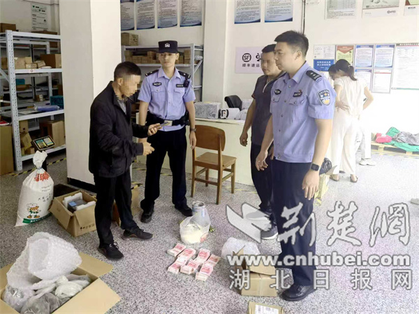 民警在快递站拦截7万元现金。通讯员供图
