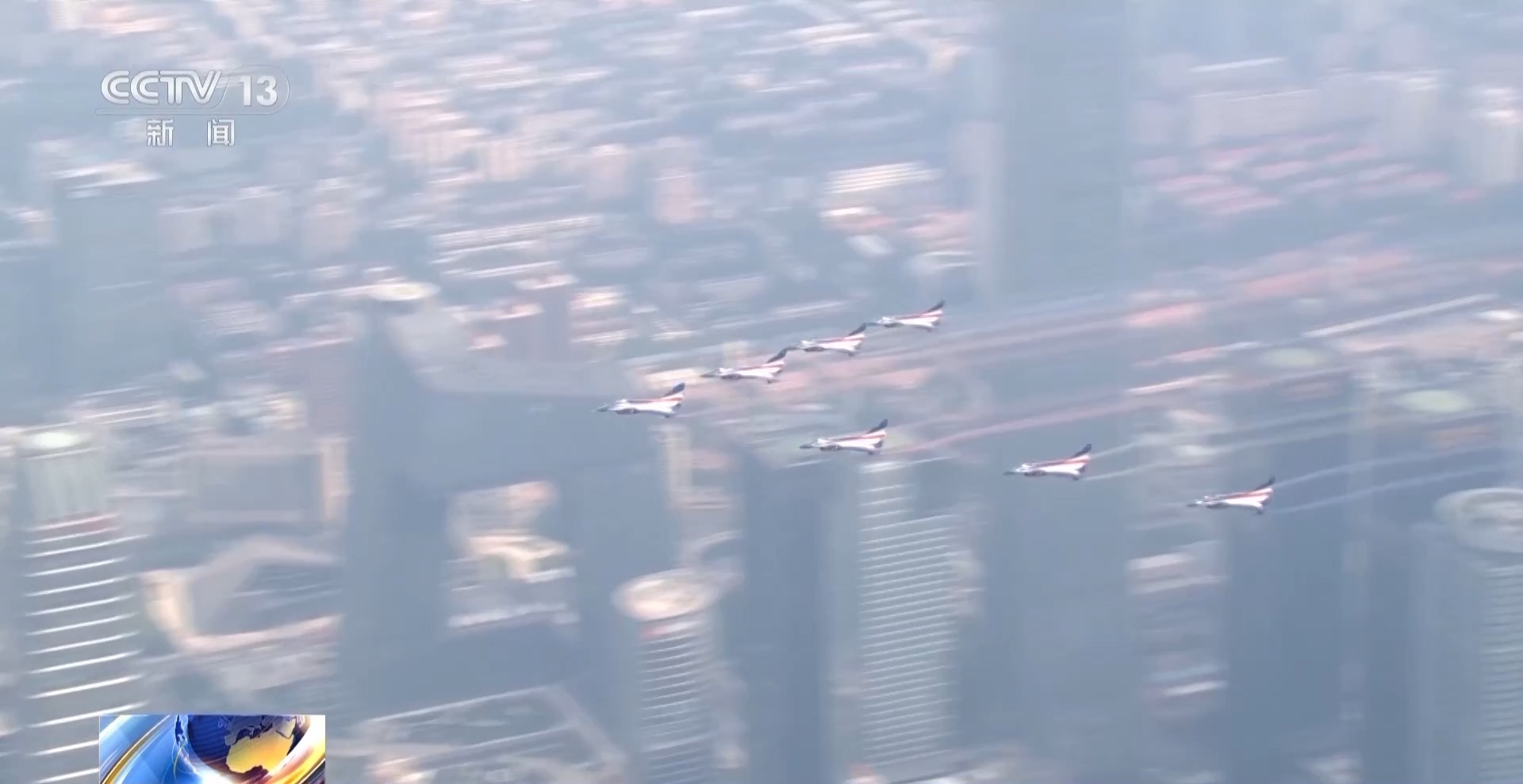 阅兵中,八一飞行表演队以7机楔形列队飞跃长安街,并拉出14道绚丽的彩烟,寓意着中华民族14年可歌可泣的抗战历程,也象征着14亿多中国人民奔向强国复兴的光明前景。