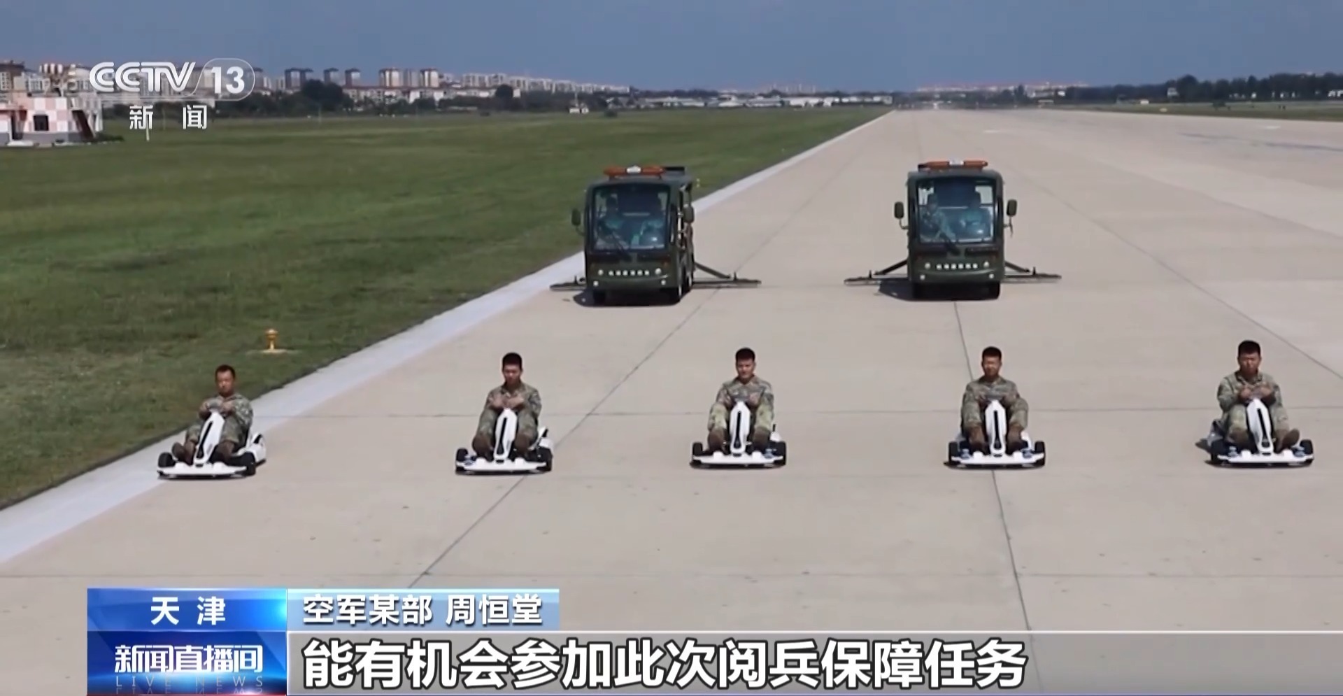 空军某部 周恒堂:此次阅兵任务是向外展示我强大人民空军的一次重要时机,广大官兵为能有机会参加此次阅兵保障任务,感到十分光荣。