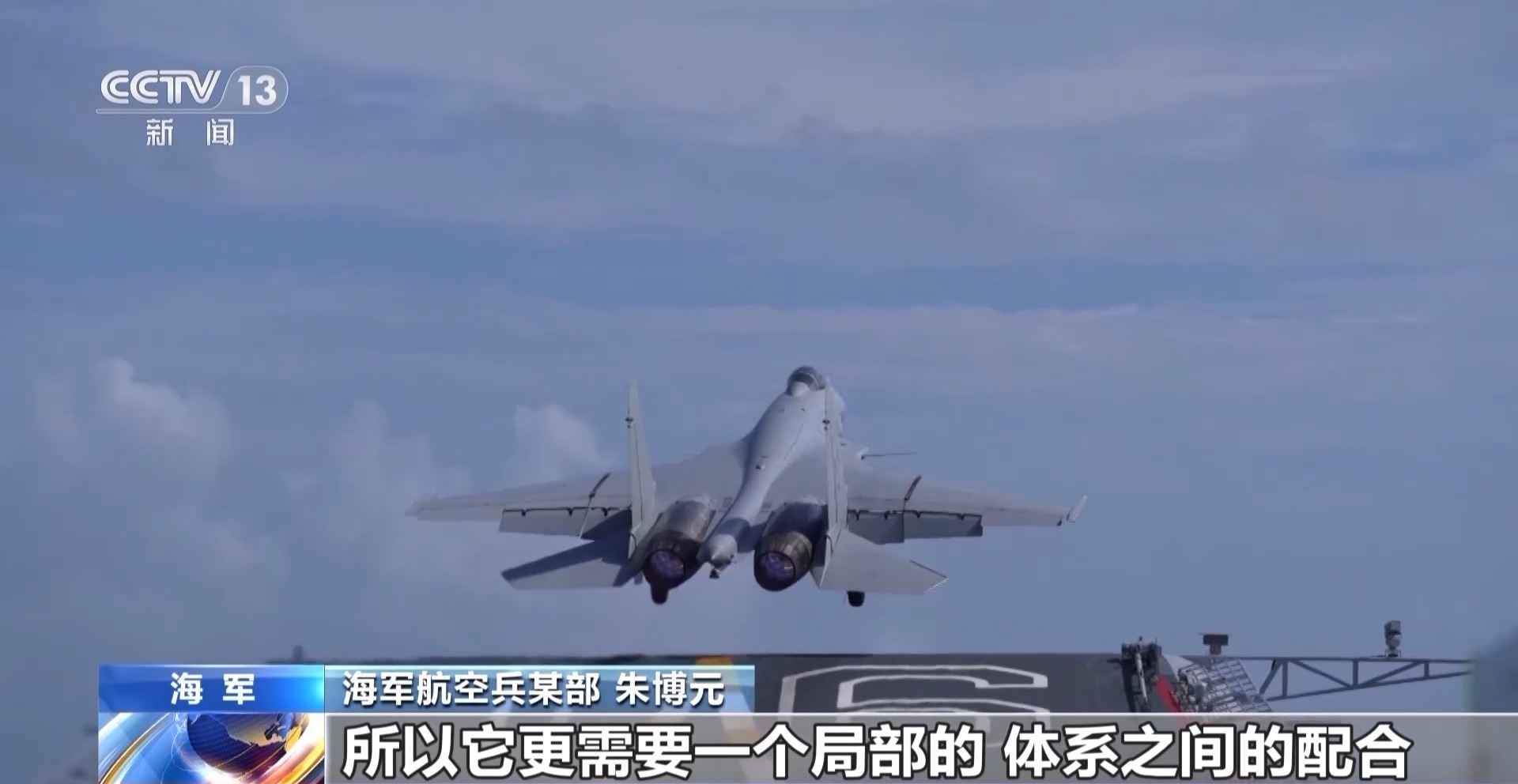 海军航空兵某部 朱博元:未来的战争都是体系之间的对抗和较量,对航母编队来讲,这一点显得尤为重要。因为整个航母编队部署在远海大洋,更需要局部的、体系之间的配合,其中包括预警机、战斗机、电子战飞机以及其他水面舰艇力量。比较典型的航母编队体系构成,有歼-35飞机、歼-15T飞机、歼-15D飞机,以及空警-600。在不远的将来,会更加显著体现体系作战能力。