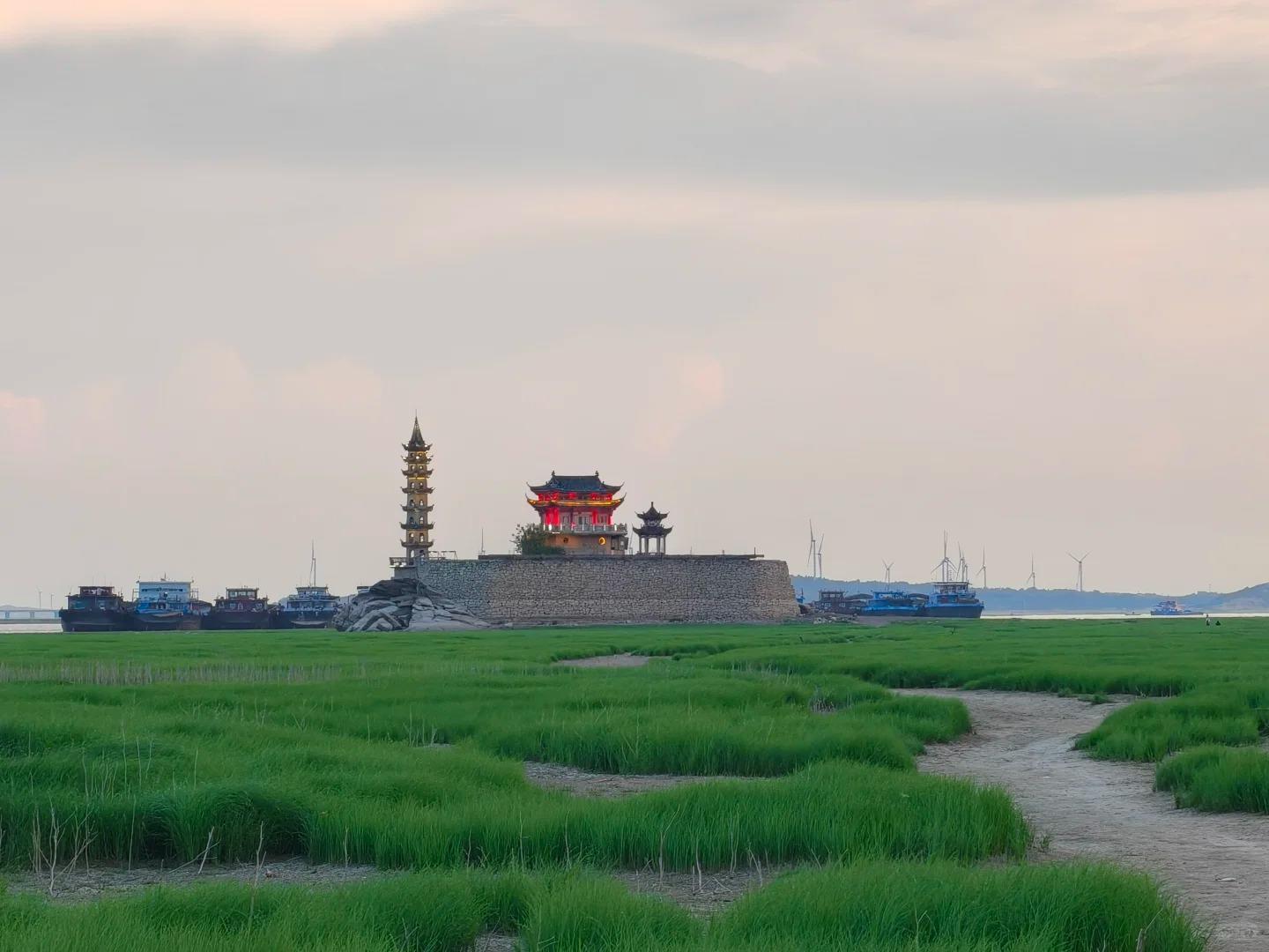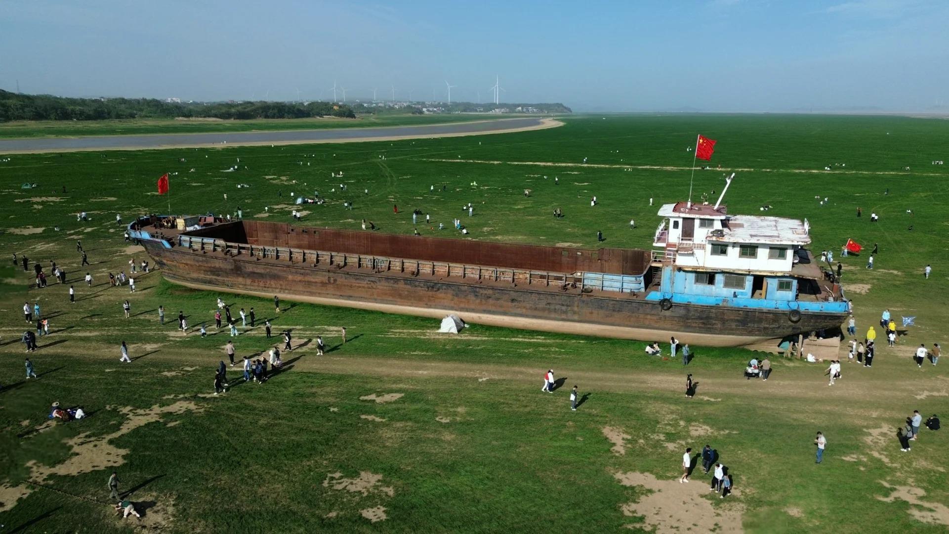 据悉,每逢枯水期,鄱阳湖裸露出来的湖底都会长满绿草,周边的村民会在里面放牛,天空有各种鸟类自由翱翔,草地一望无际宛如大草原般,当地人习惯称之为鄱阳湖草海。落星墩位于九江庐山市南康镇,每年露出水面后,都会吸引众多游客来拍照打卡。
