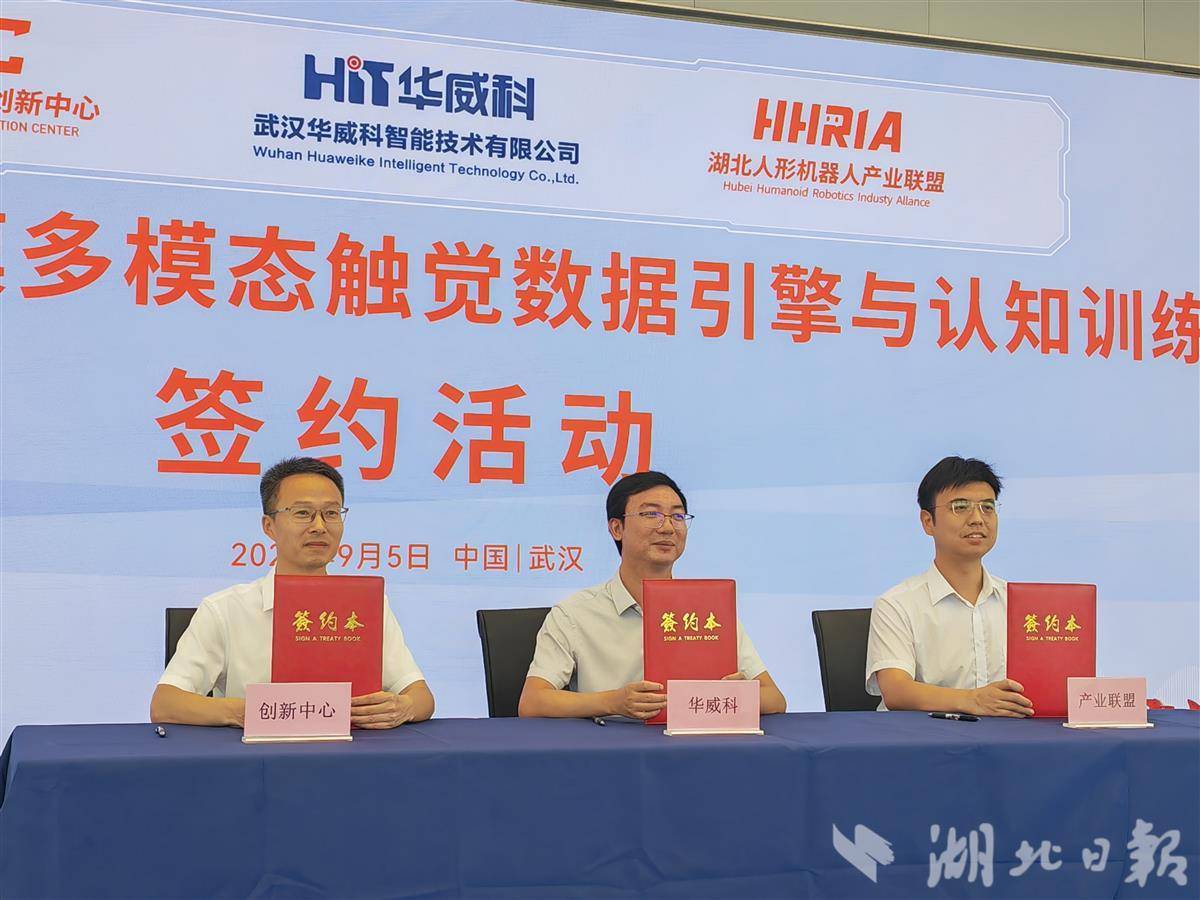 湖北日报讯(记者马文俊)9月5日,中国光谷数字经济产业园,湖北人形机器人创新中心、武汉华威科智能技术有限公司(后文简称“华威科”)与湖北人形机器人产业联盟签约,启动建设行业首个开放架构的超大规模多模态触觉数据引擎与认知训练中心。