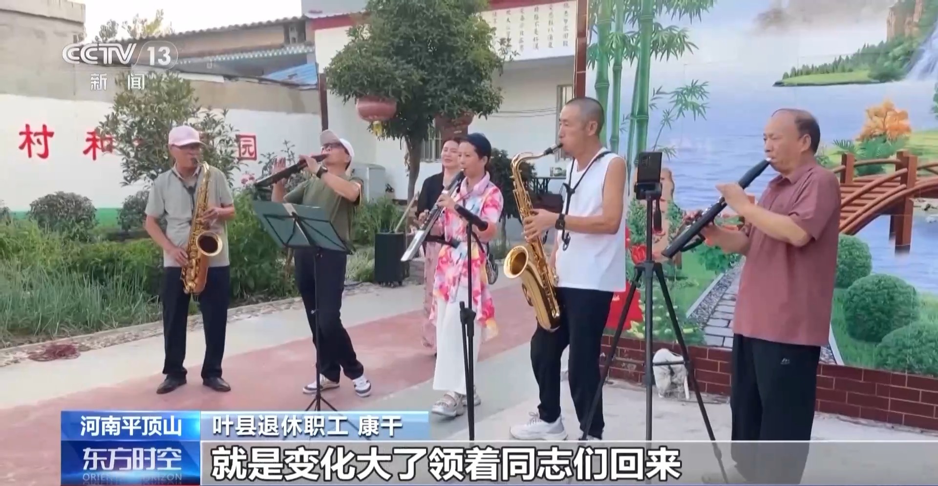 叶县退休职工 康干:美丽乡村变化大,领着同志们回来给乡里乡亲们带来点欢乐、带来点快乐,最喜欢的是我的家园外面的风景,一条河流。