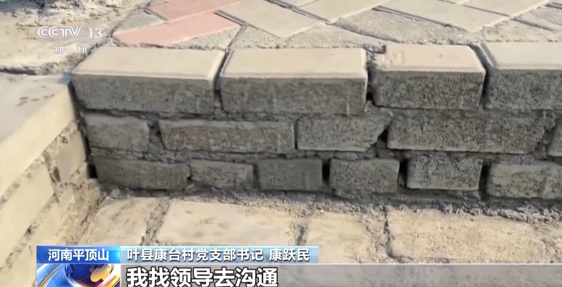 叶县康台村党支部书记 康跃民:有一次我上乡政府去开会,发现乡政府正在危房改造,正在拆旧砖,我找领导去沟通,能不能把这砖给我们。领导同意后,我立马回来带着人把这些砖头拉回来,河道边正好有两道步行道需要铺砖,如果我们要是掏钱买砖头,至少得花去4万块钱。