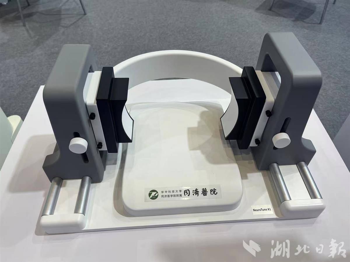 该院工作人员李云杰在现场介绍,团队研发出一款“智能超声无创脑机治疗设备”,只需要放在患者头部,通过超声波精准刺激大脑中控制胃肠功能的特定区域,就可以改善慢传输型便秘。