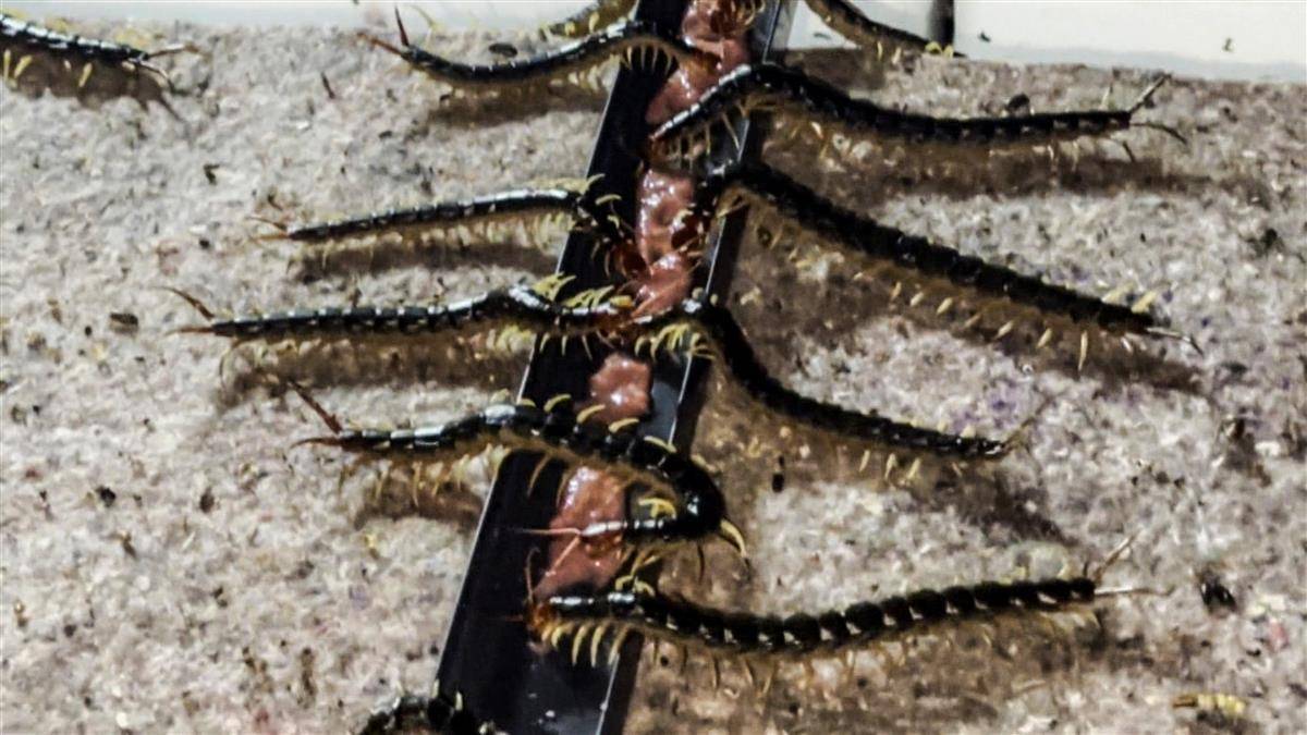 蜈蚣正在进食。 湖北日报全媒记者 夏晓君 摄