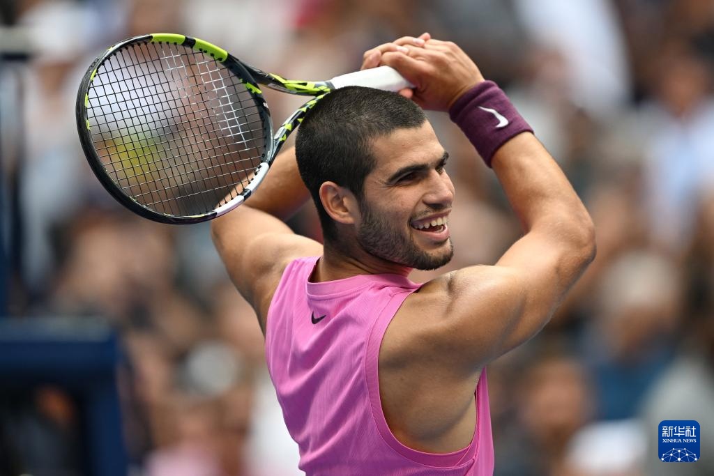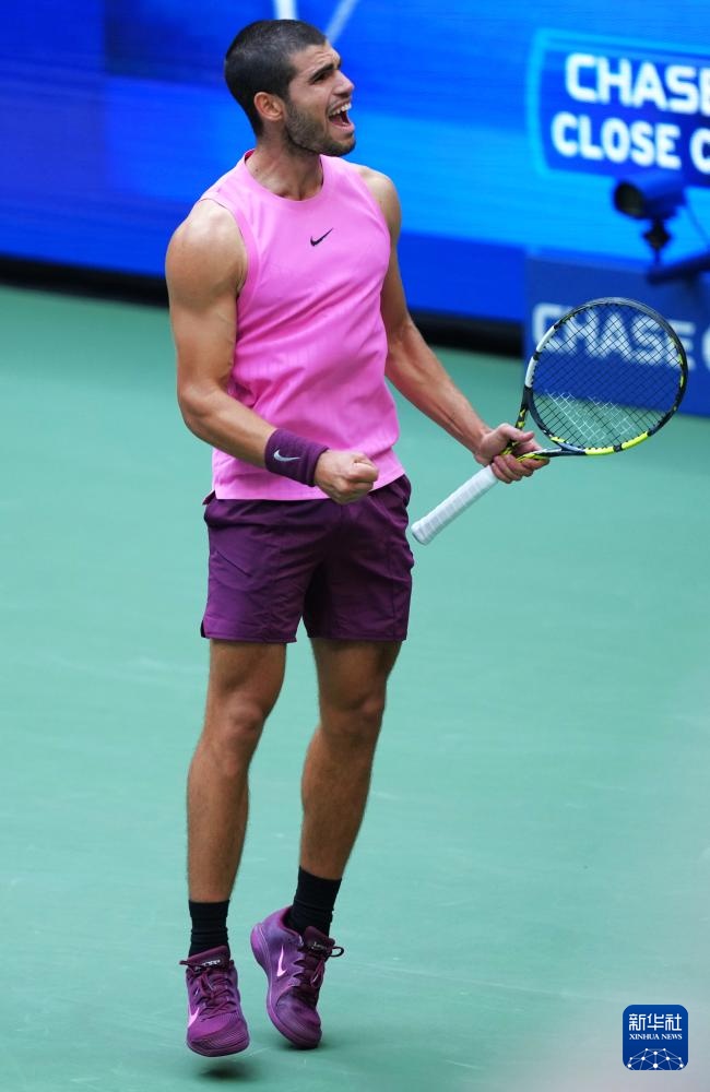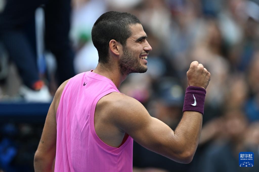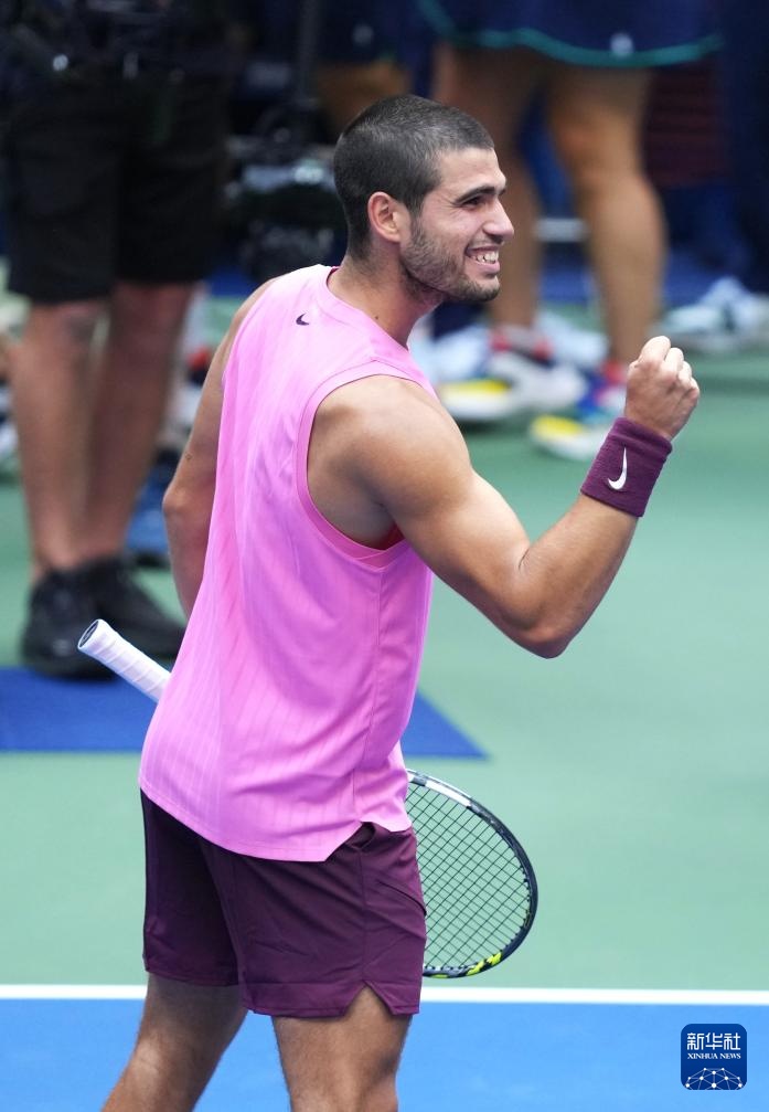 9月5日,阿尔卡拉斯在比赛后庆祝胜利。