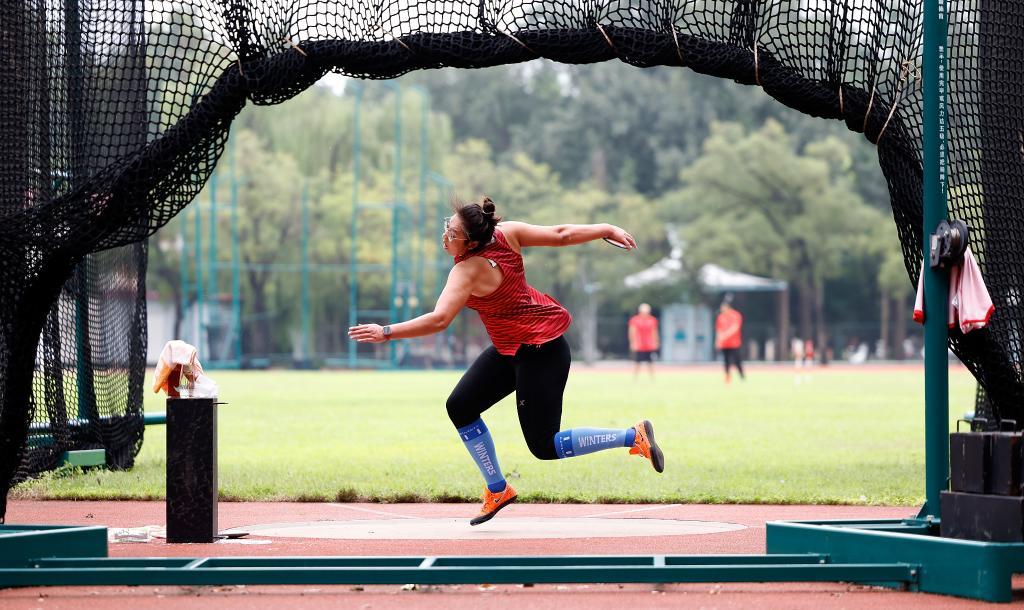 8月29日,2022年田径世锦赛女子铁饼冠军、中国铁饼选手冯彬在训练中。新华社记者 王丽莉 摄