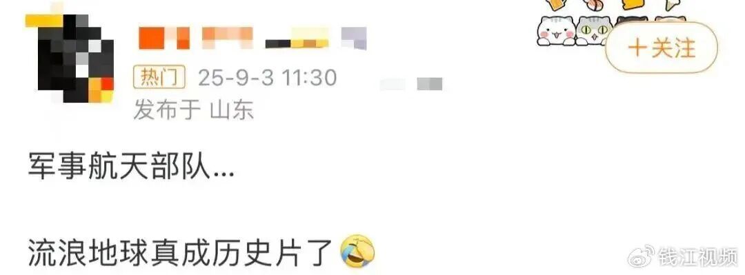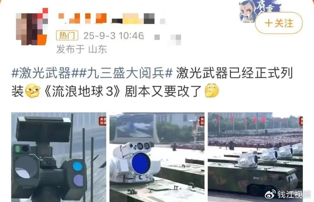 还有众多科技含量爆表的装备接连亮相,看完阅兵,不少网友想到了电影《流浪地球》,网友纷纷喊话《流浪地球》系列导演郭帆,要边看阅兵边改剧本了……