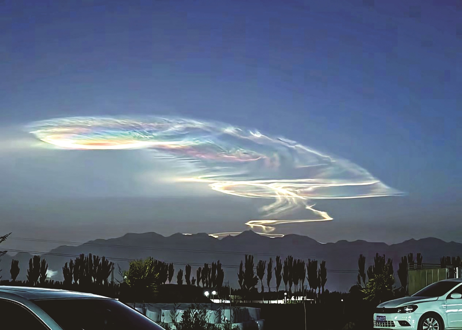 楚天都市报极目新闻讯(记者陈洋洋)不少网友称,9月5日傍晚,宁夏多地夜空出现七彩祥云,绚丽的景象吸引不少人拍照。6日上午,多名目击者向极目新闻记者表示,七彩祥云出现在5日晚8时左右,在天空西北方向可以清晰看到。据科普博主表示,该现象系为“火箭夜光云”,即火箭发动机尾气与大气接触产生的景象。