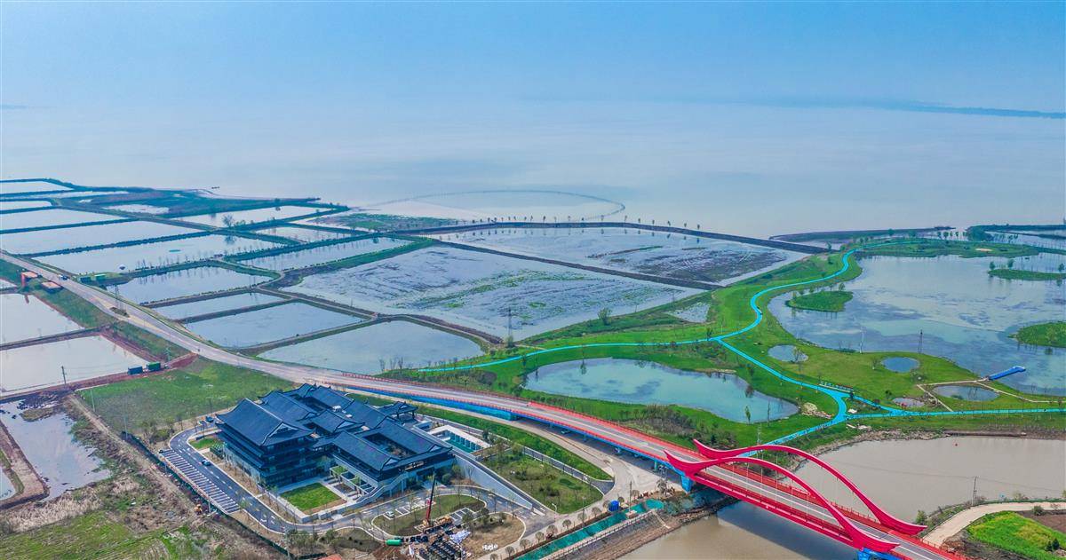 俯瞰梁子湖水草基地。(图:湖北日报全媒记者 薛婷)