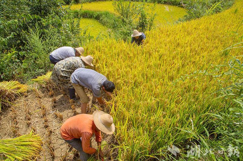 金秋九月,巴东县溪坵湾乡甘坪村水田里稻浪金黄,迎来稻谷大丰收。